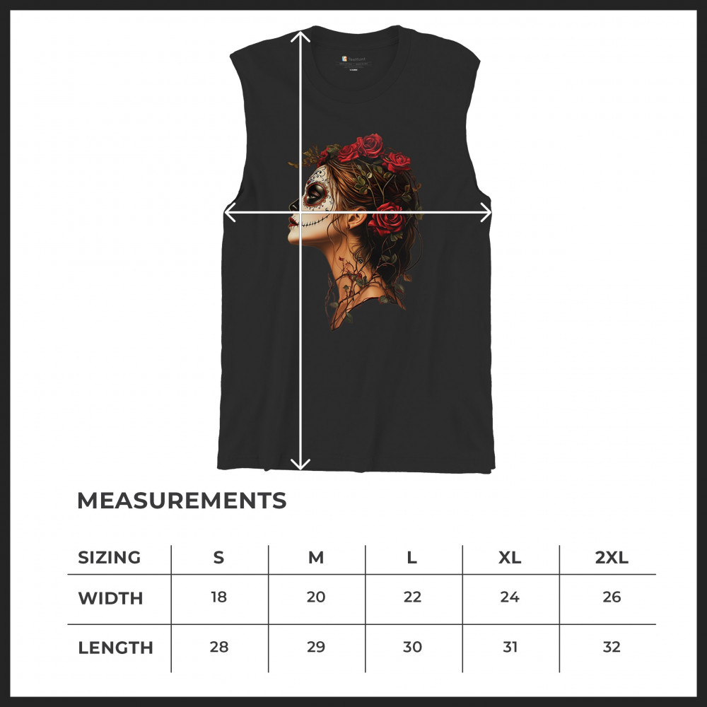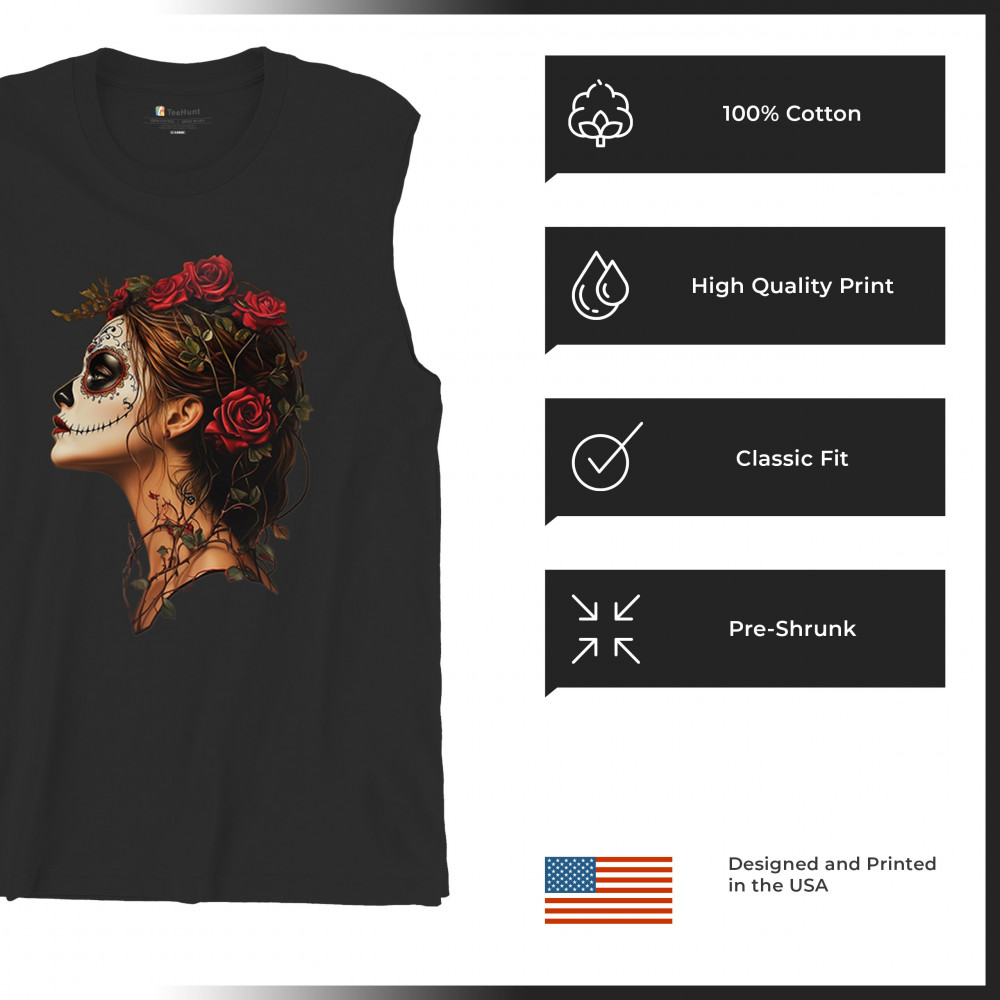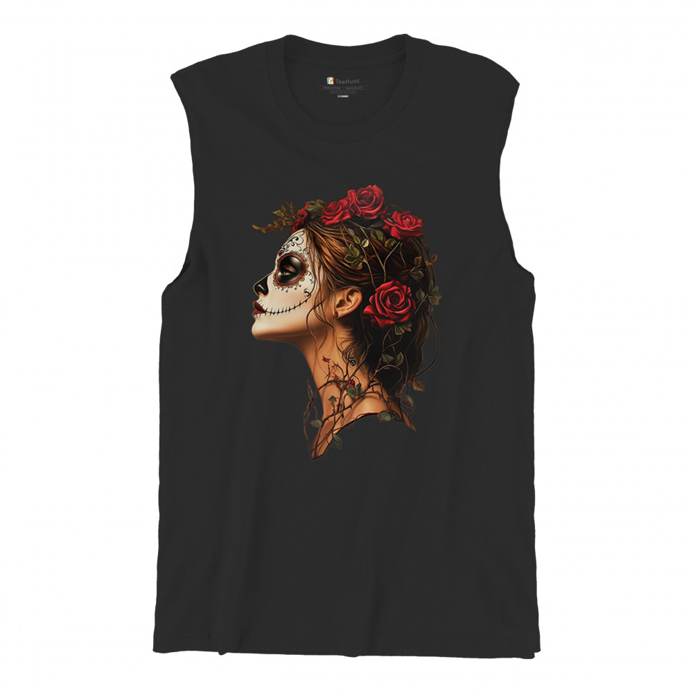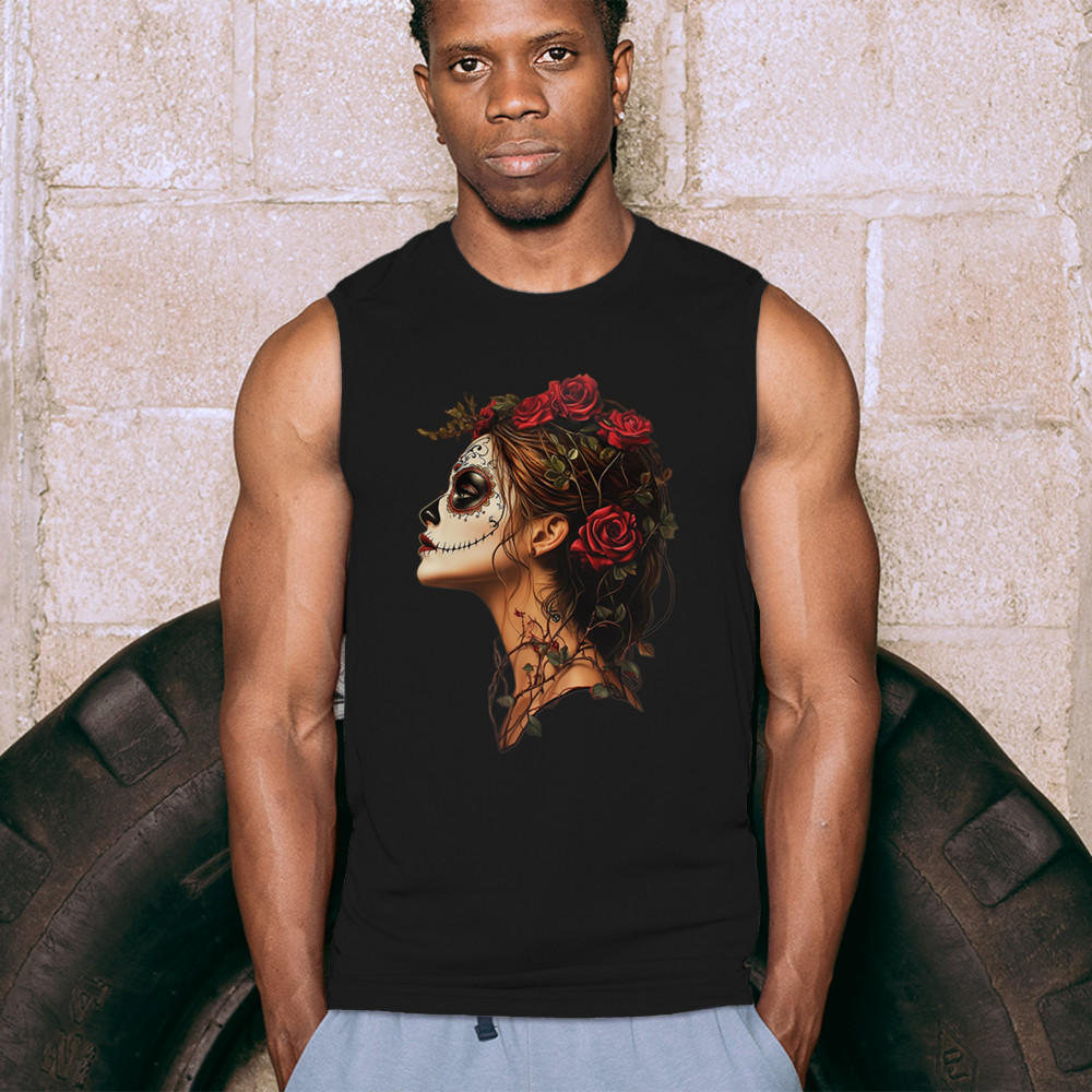 SUGAR SKULL PROFILE muscle shirt dia de los muertos skeleton face floral men's black