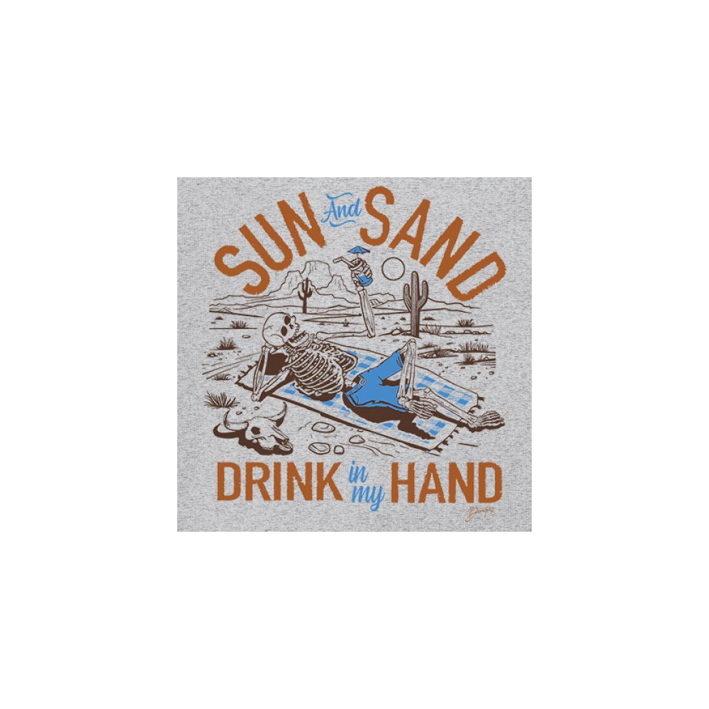 Relive your beach memories with our 'Sun, Sand, and Drink in Hand' design, evoking the carefree spirit of summer days.