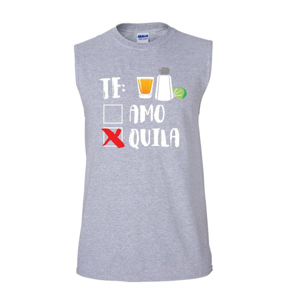 TE AMO OR TEQUILA muscle shirt funny cinco de mayo & drinko mexican sleeveless gray