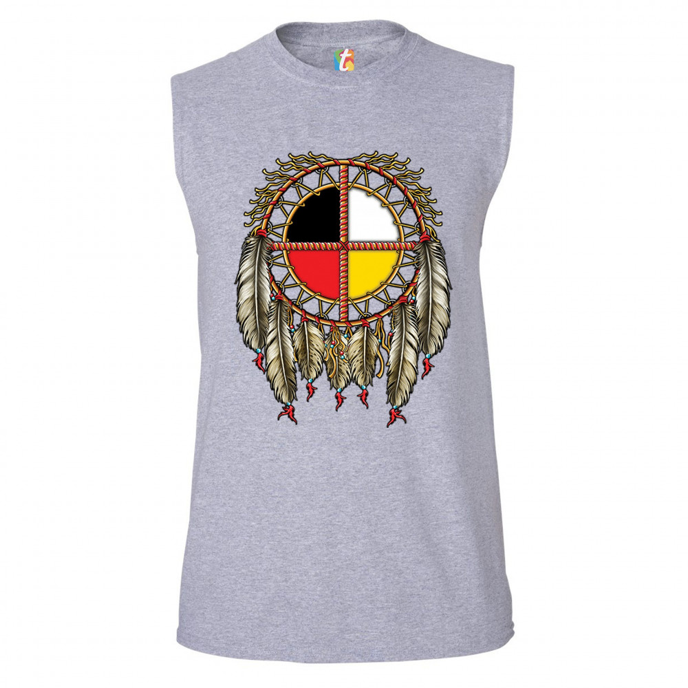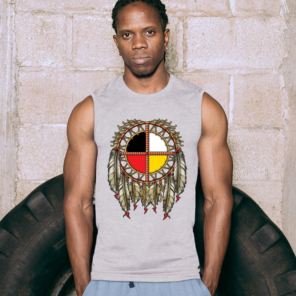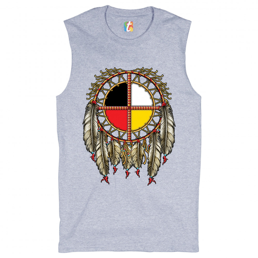 THE MEDICINE WHEEL DREAMCATCHER muscle shirt native american symbol men's gray