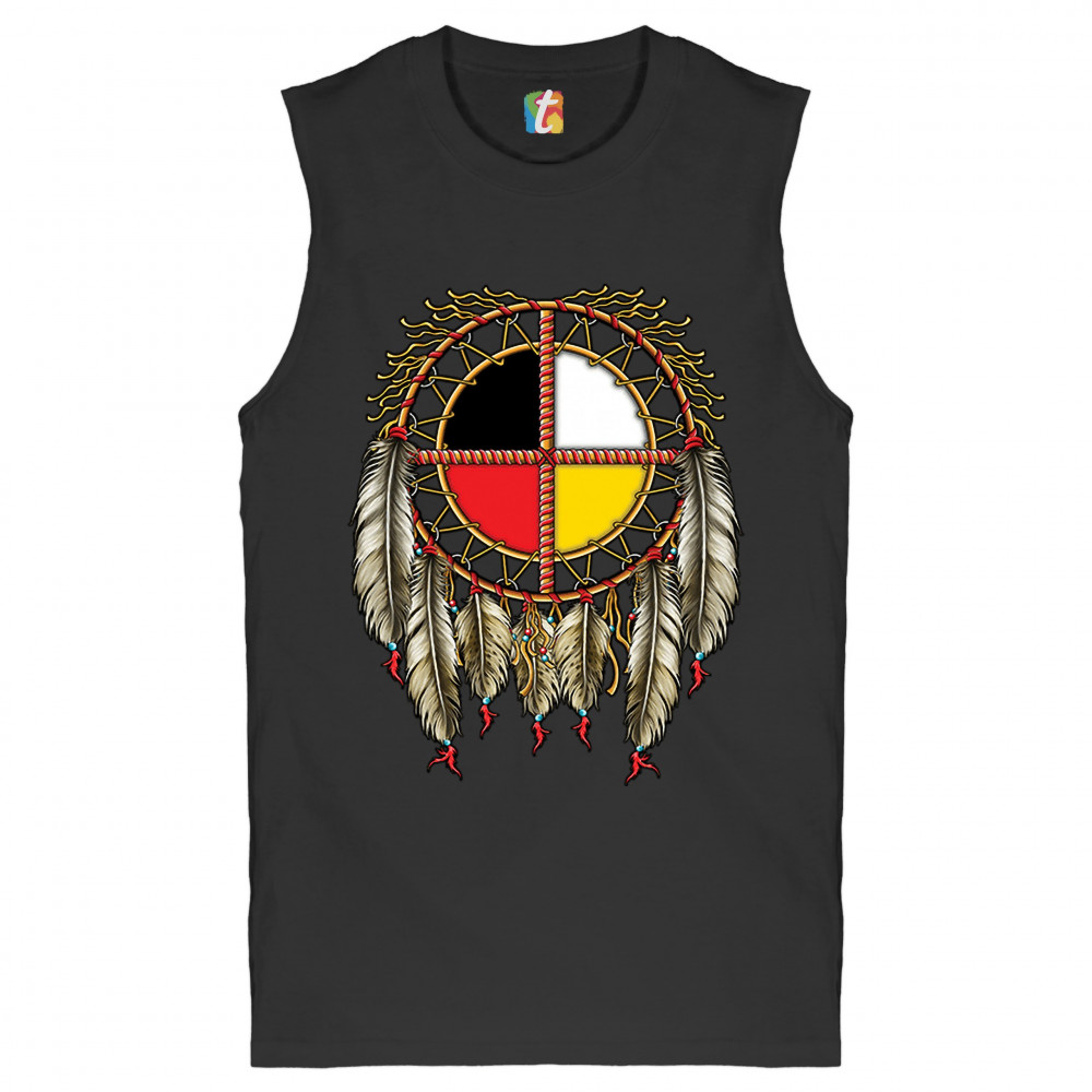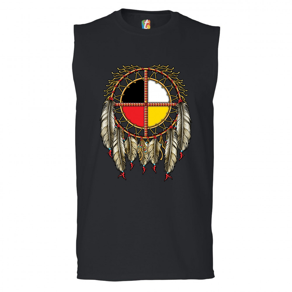 THE MEDICINE WHEEL DREAMCATCHER muscle shirt native american symbol men's black