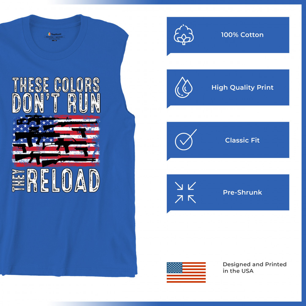 Explore the embodiment of patriotism with our 'These Colors Don't Run, They Reload' tee. A bold statement for those who honor freedom and resilience.
