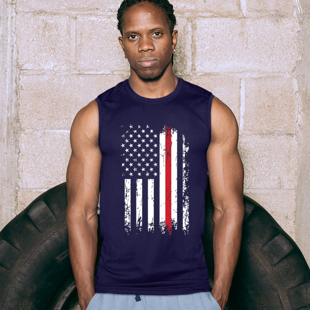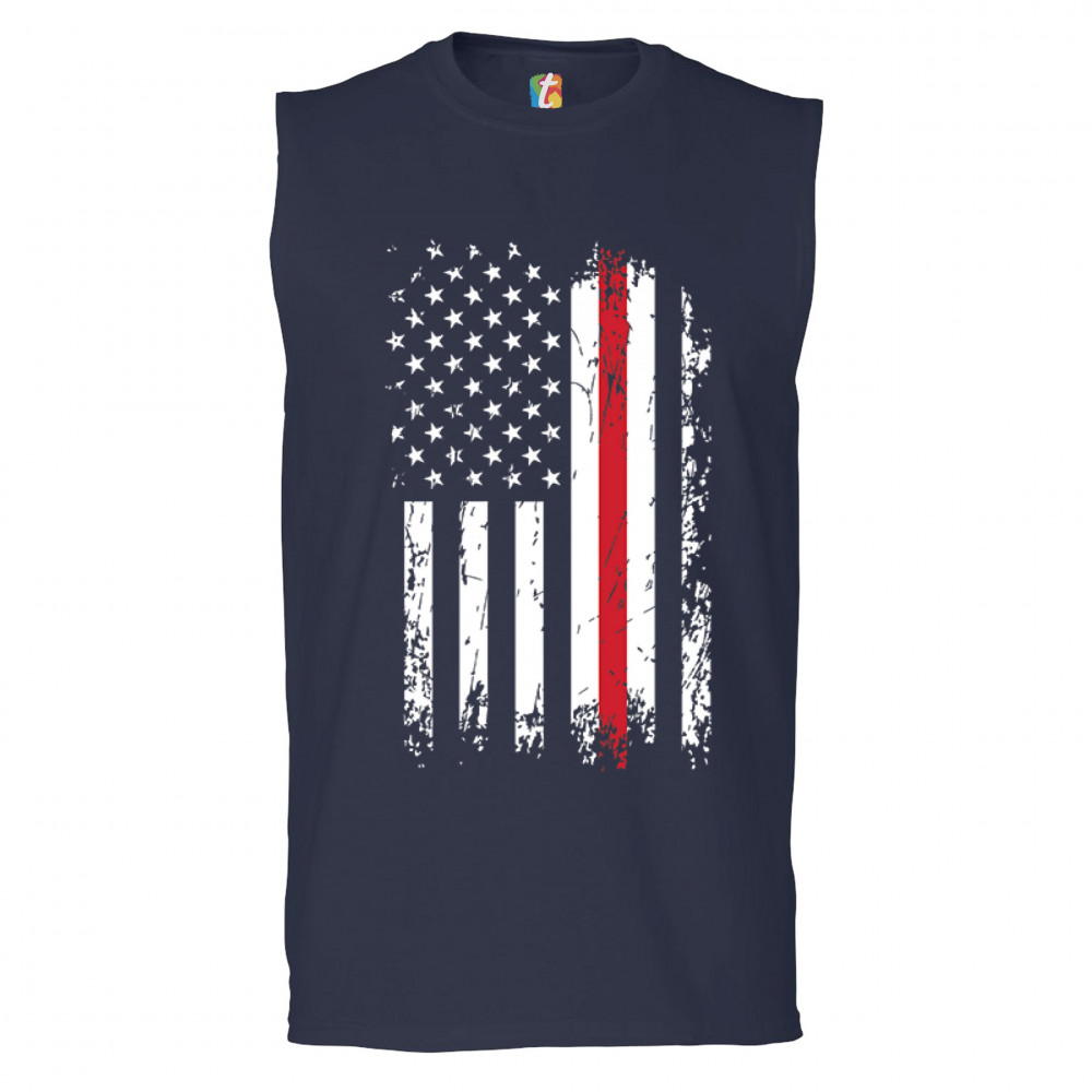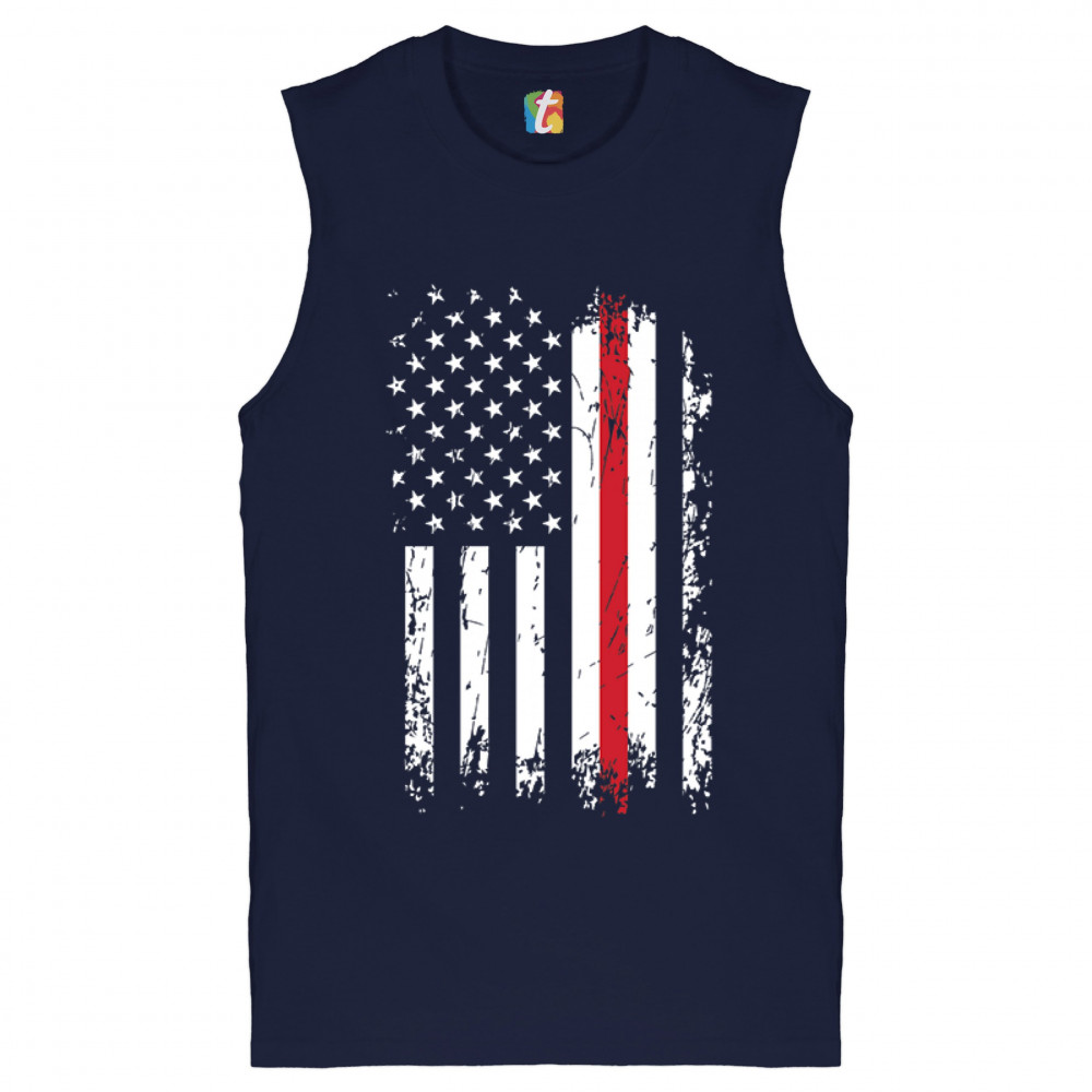 THIN RED LINE muscle shirt american flag firefighter fire department men's navy blue