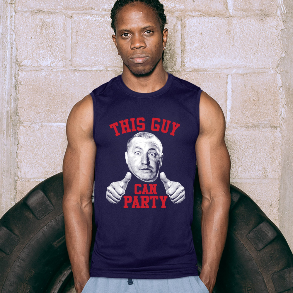 THIS GUY CAN PARTY muscle shirt curly howard the three stooges men's navy blue