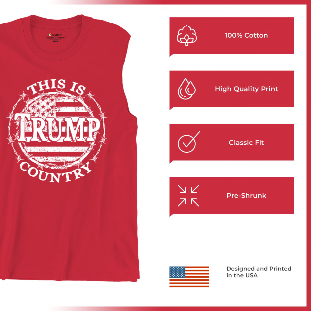 Show your support for Trump and JD Vance with the "Trump Country" design, featuring a distressed American flag and barbed wire. Perfect for rallies and patriotic events.
