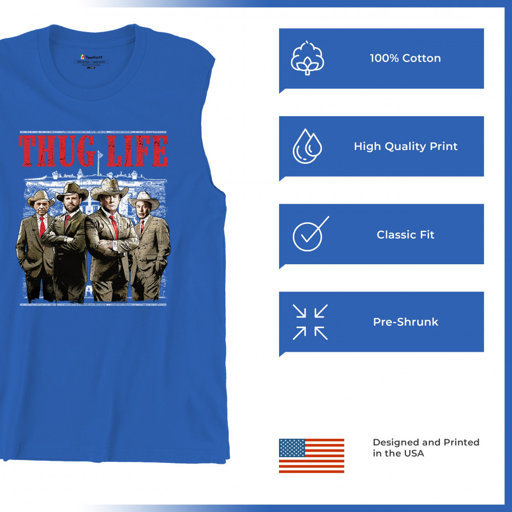 Make a statement with the Thug Life T-shirt, a must-have for every Republican and Trump supporter who stands for America First. Designed for those who believe in We The People Have Spoken, this shirt is perfect for rallies, events, or everyday wear. Featuring bold imagery and high-quality materials, it's a tribute to conservative values, the Red Wave, and the party of common sense. Get yours today and show your patriotic spirit.