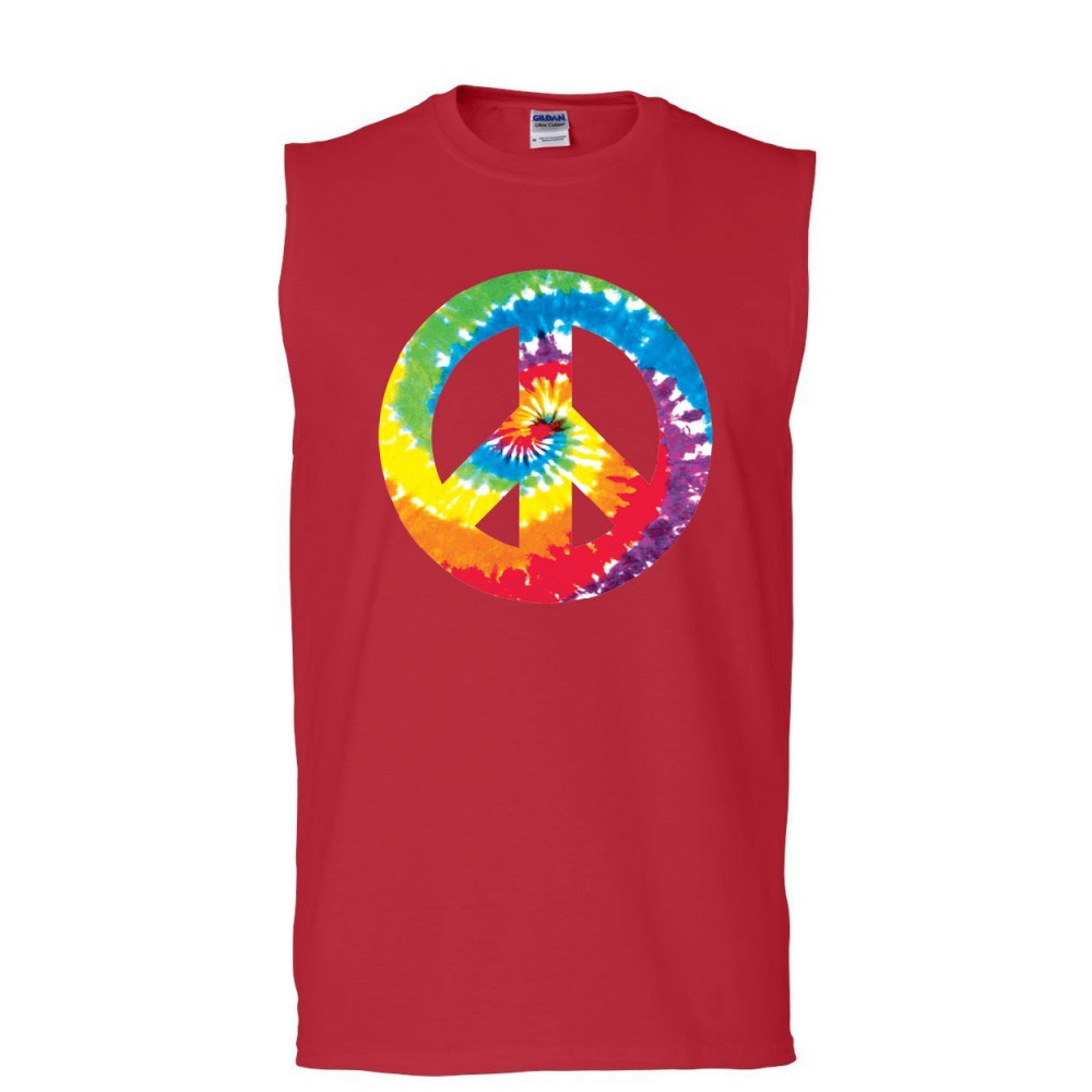 TIE DYE PEACE SYMBOL 80'S muscle shirt hippie happiness love not war sleeveless red