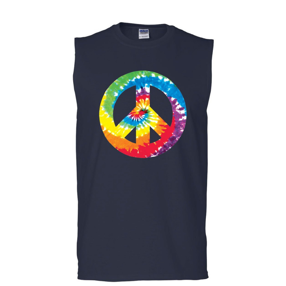 TIE DYE PEACE SYMBOL 80'S muscle shirt hippie happiness love not war sleeveless navy blue