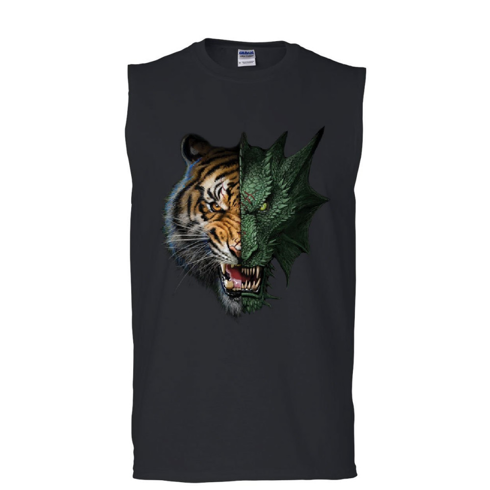 TIGER DRAGON FACE tiger and dragon face muscle shirt animal beast fantasy monster fang sleeveless black