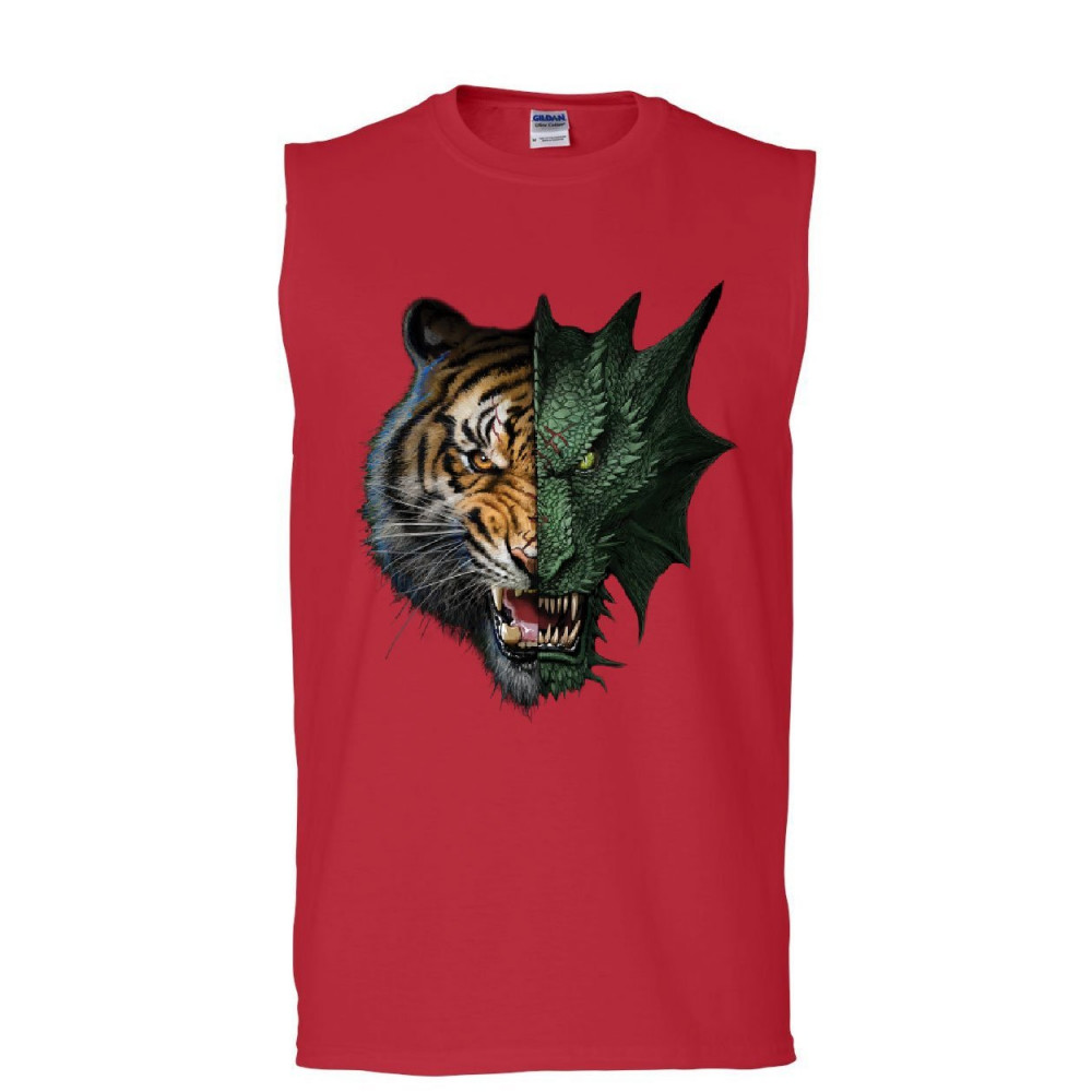 TIGER DRAGON FACE tiger and dragon face muscle shirt animal beast fantasy monster fang sleeveless red