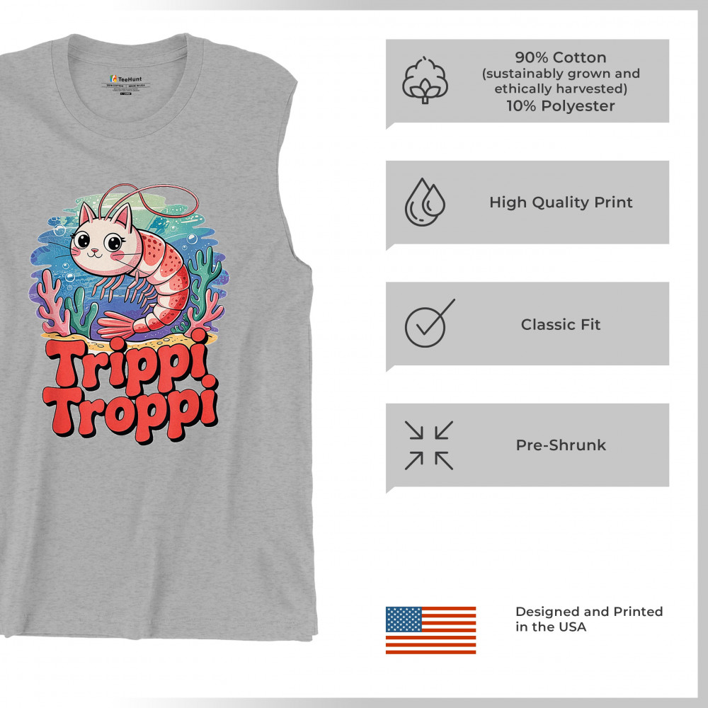 Dive deep into absurdity with Trippi Troppi—a surreal shrimp-cat fusion straight out of Italian Brainrot territory. This design captures cursed animal chaos, weirdcore visuals, TikTok meme culture, and underwater fever dream aesthetics. Made for Gen Z humor addicts, ocean meme fans, and ironic fashion lovers alike.