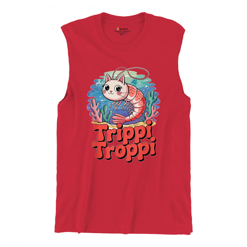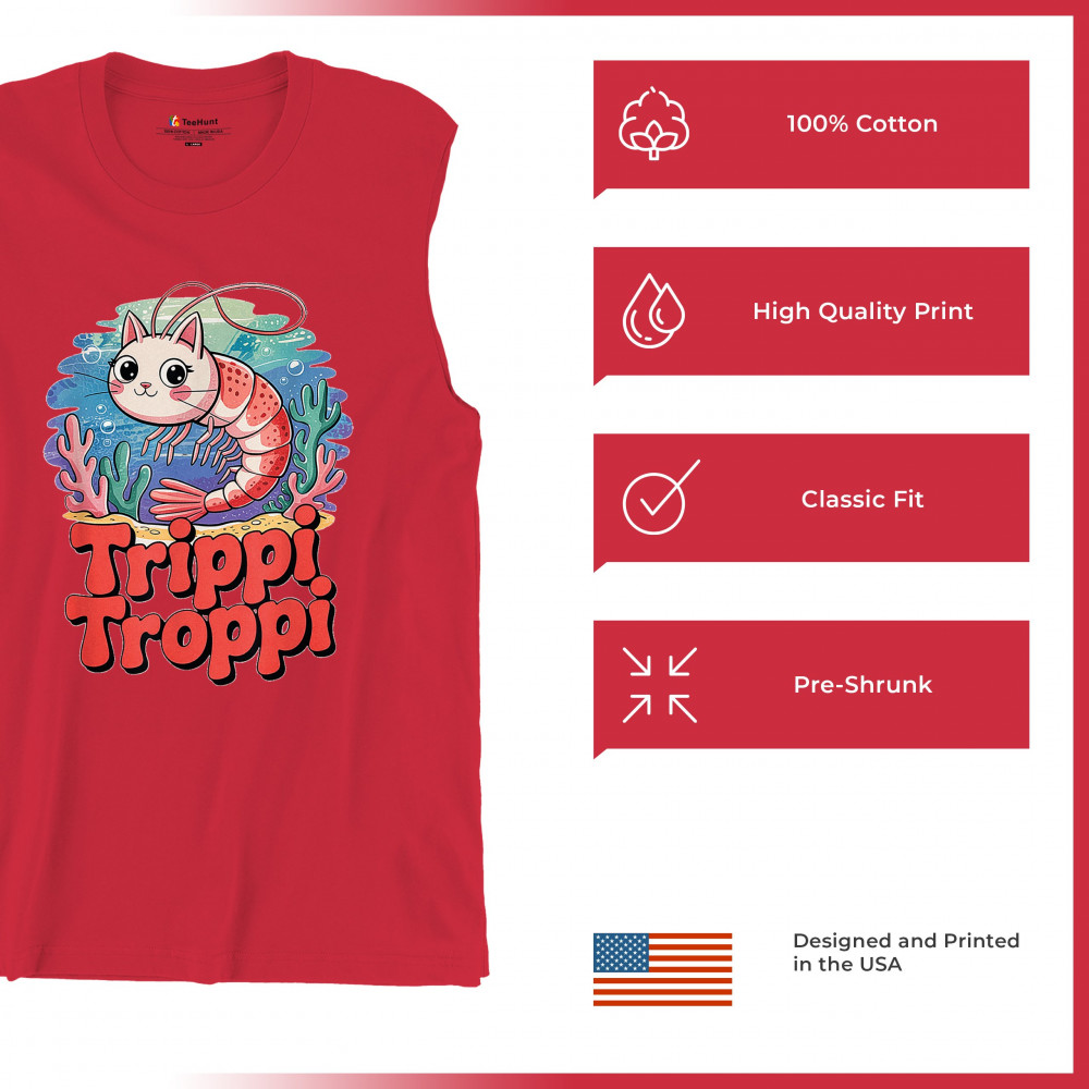 Dive deep into absurdity with Trippi Troppi—a surreal shrimp-cat fusion straight out of Italian Brainrot territory. This design captures cursed animal chaos, weirdcore visuals, TikTok meme culture, and underwater fever dream aesthetics. Made for Gen Z humor addicts, ocean meme fans, and ironic fashion lovers alike.