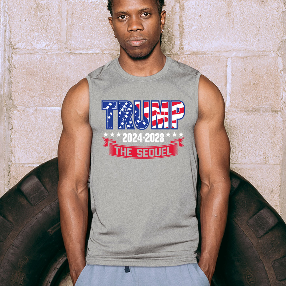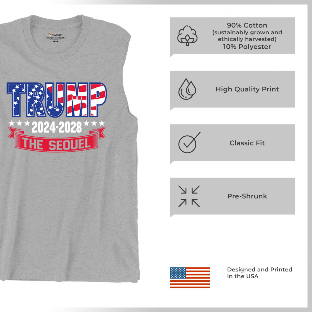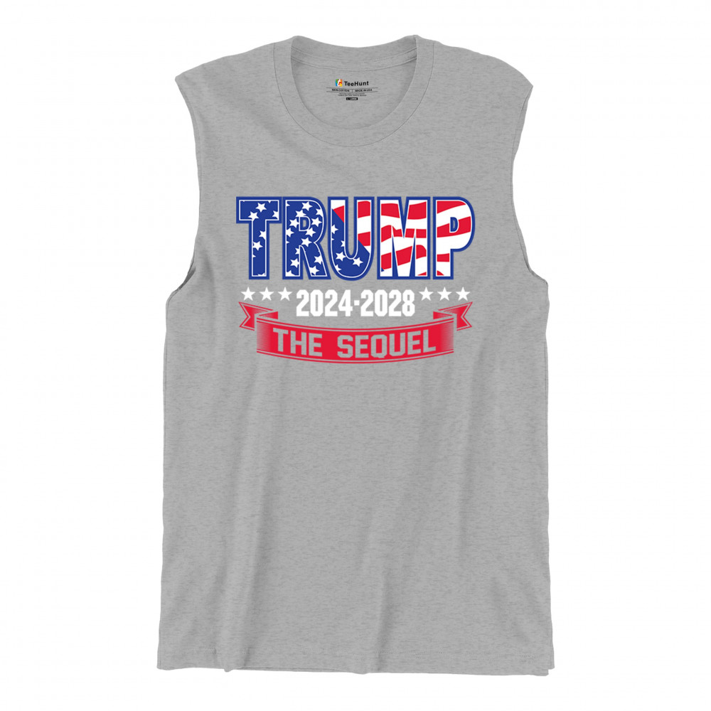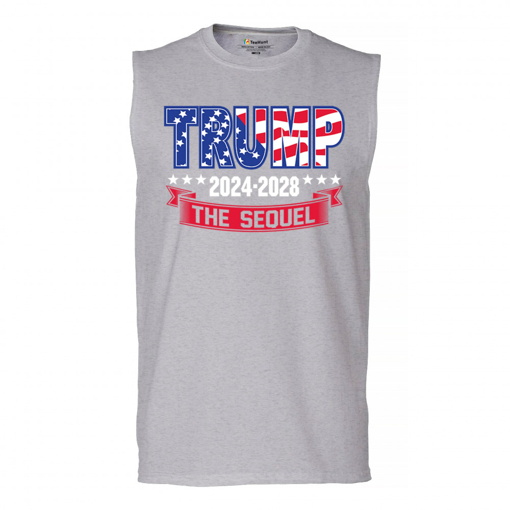 Stand with Trump for 2024-2028 in "The Sequel" design, celebrating America First, conservative values, and 4 more years of patriotic vision.