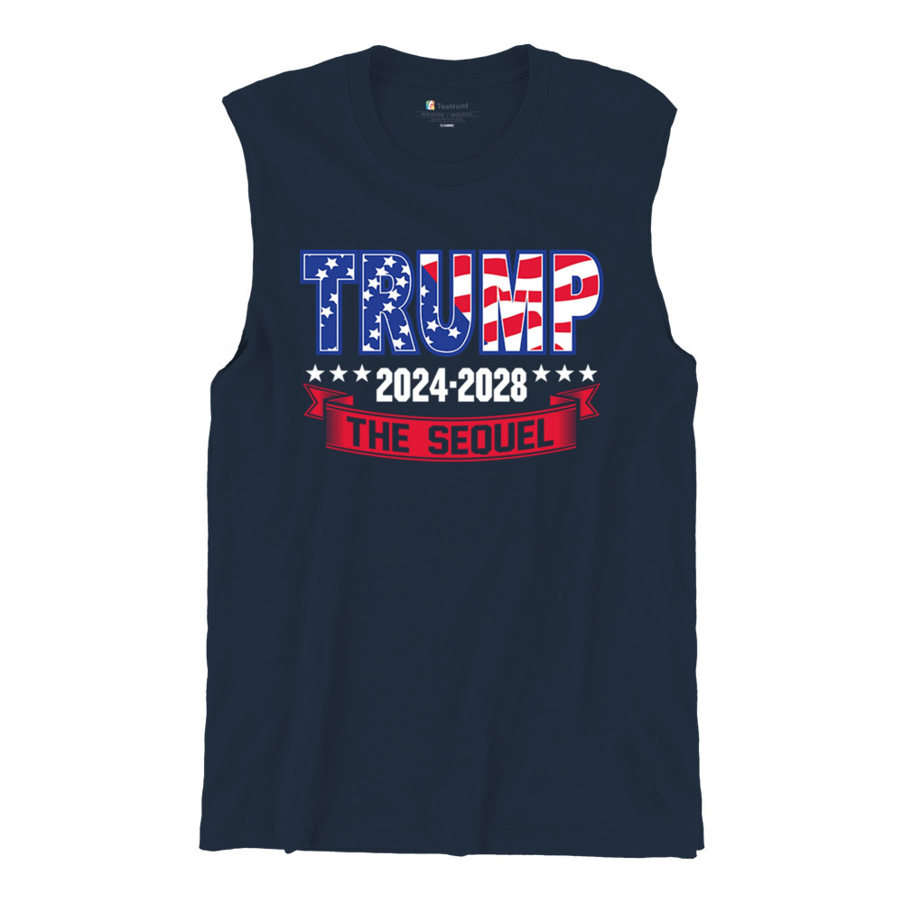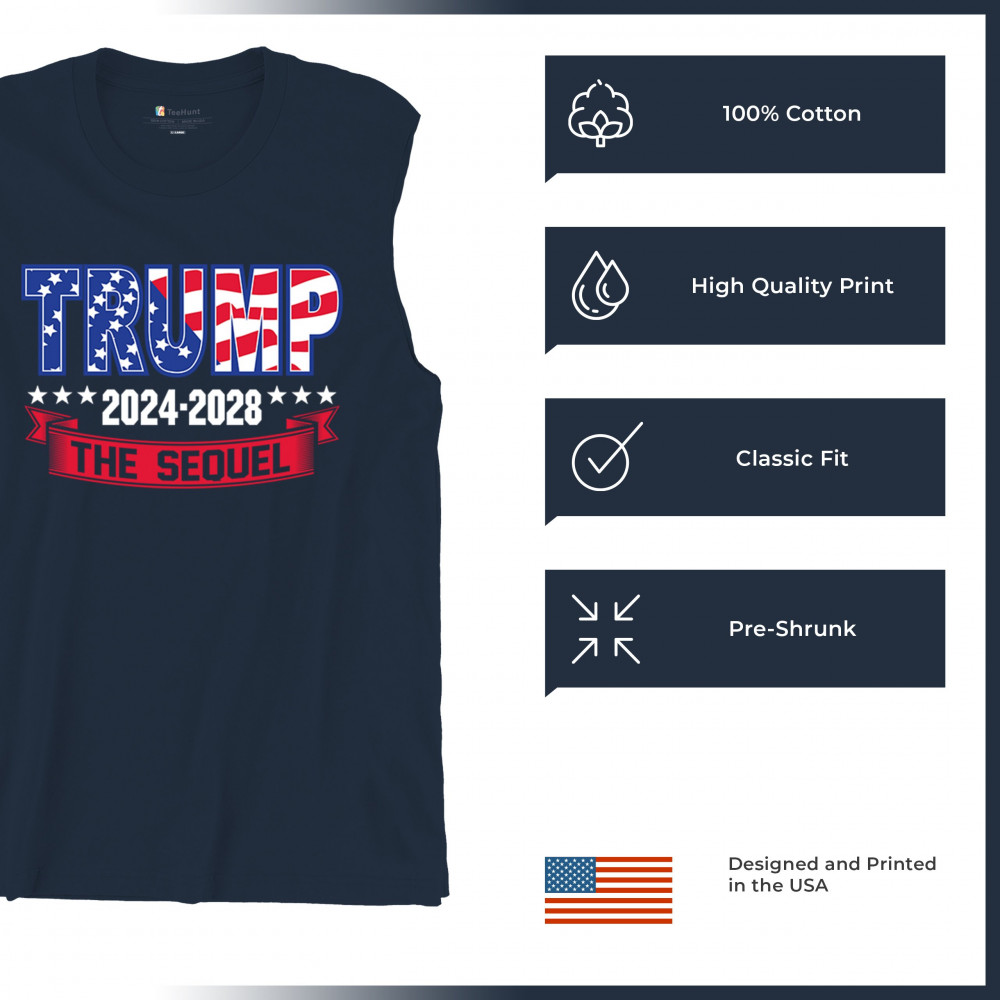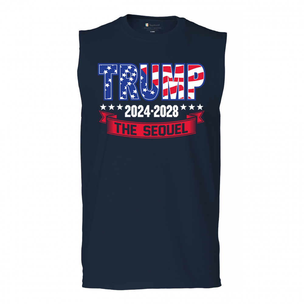 Stand with Trump for 2024-2028 in "The Sequel" design, celebrating America First, conservative values, and 4 more years of patriotic vision.