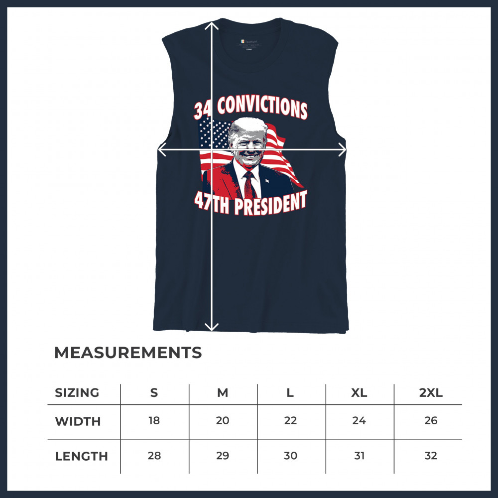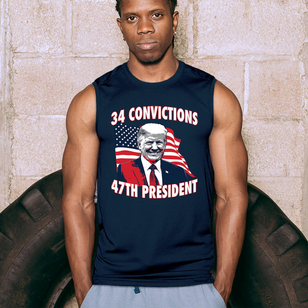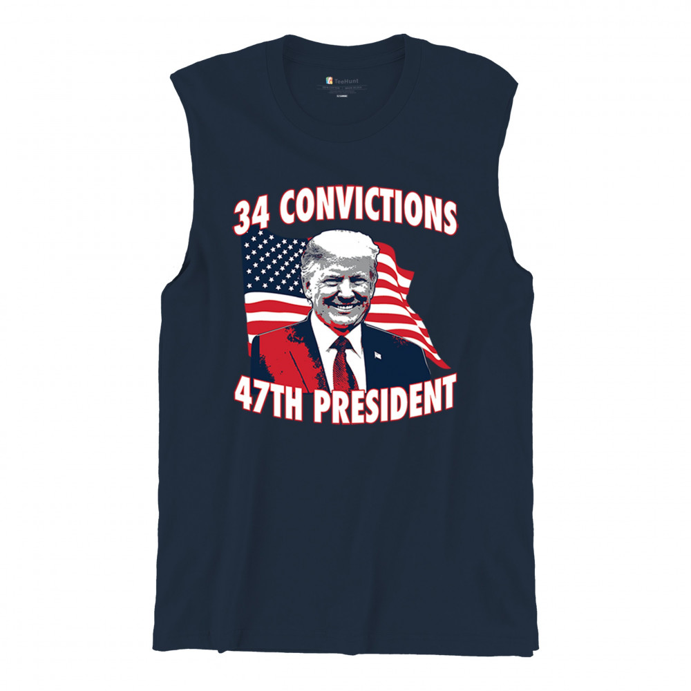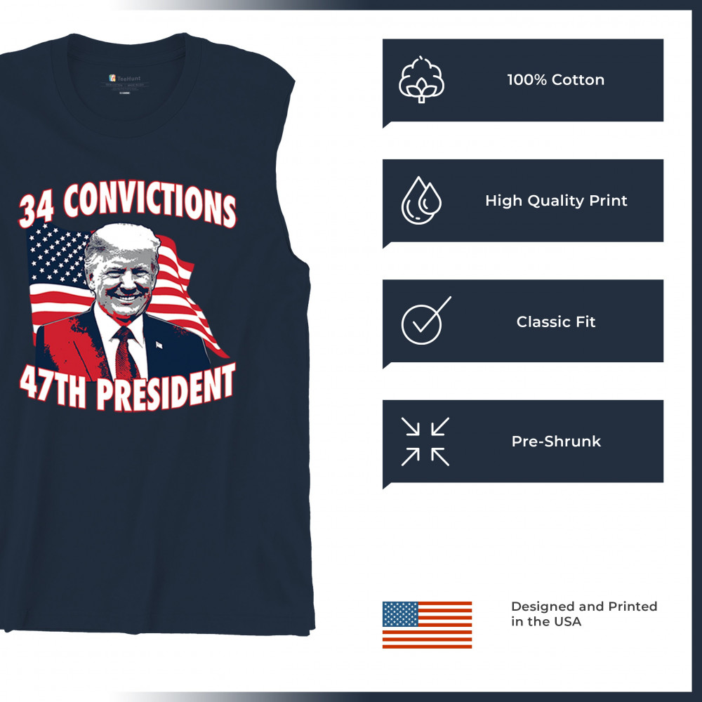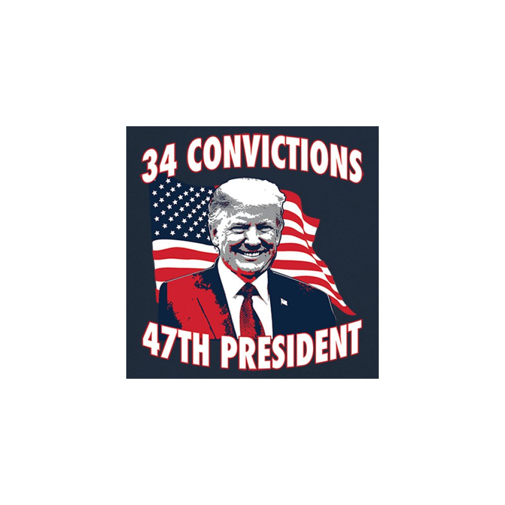Show your support for Trump's 2024 campaign with the "34 Convictions, 47th President" design. Perfect for rallies, patriotic events, and conservative gatherings.