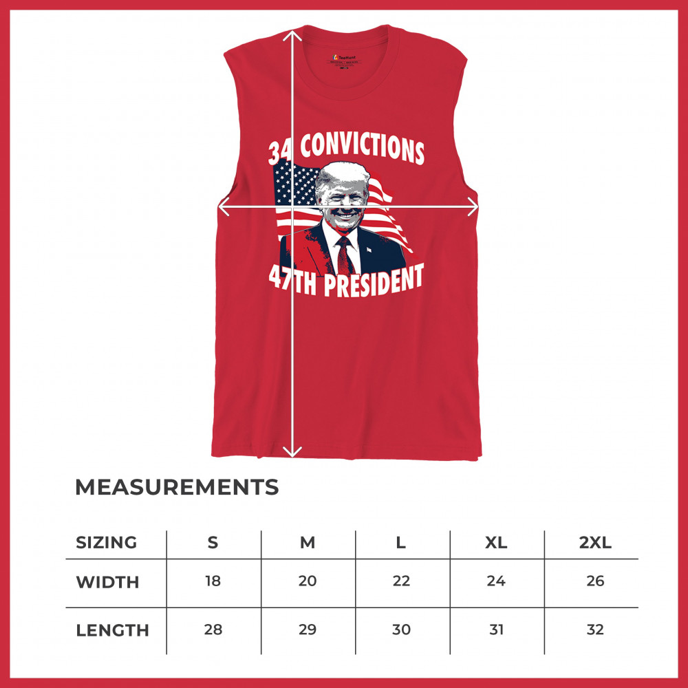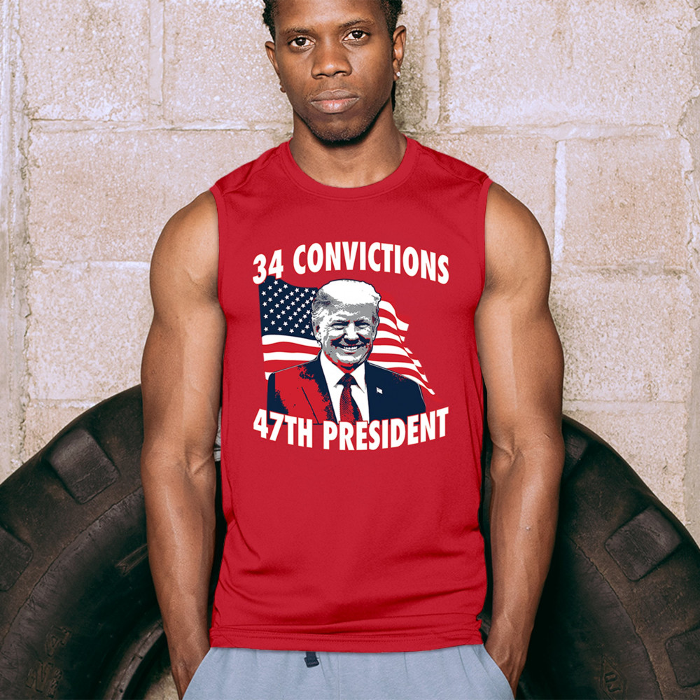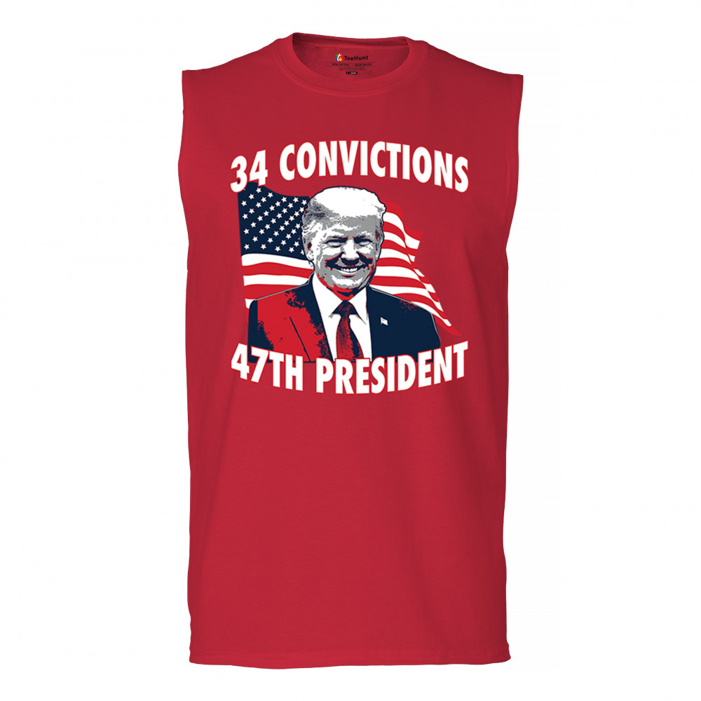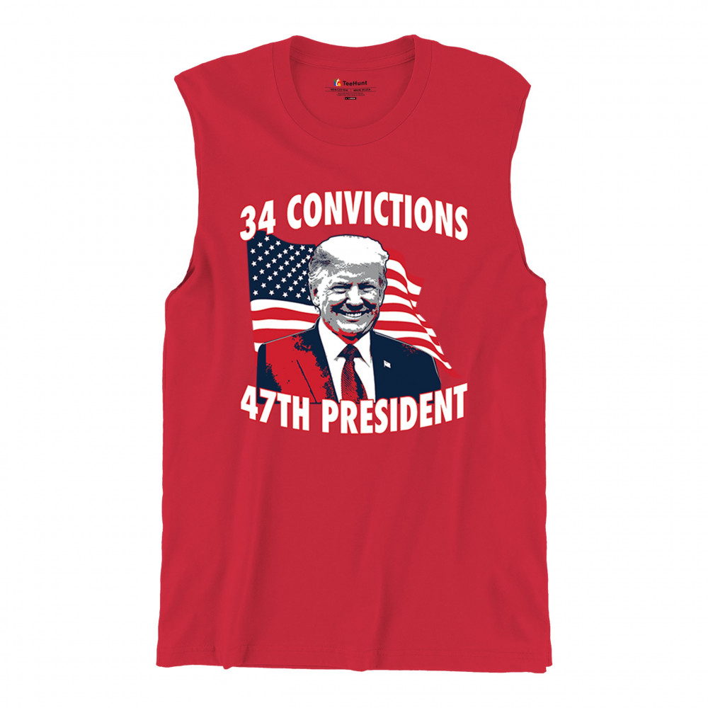 Show your support for Trump's 2024 campaign with the "34 Convictions, 47th President" design. Perfect for rallies, patriotic events, and conservative gatherings.