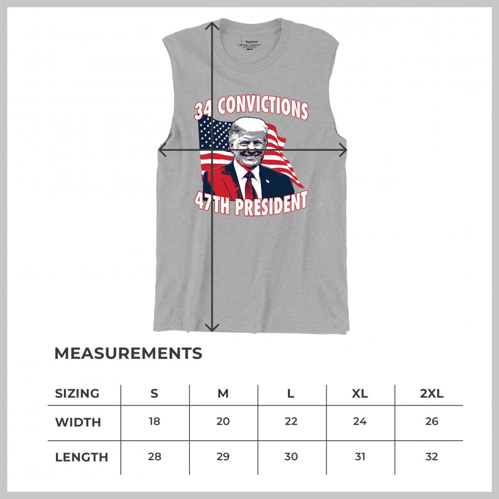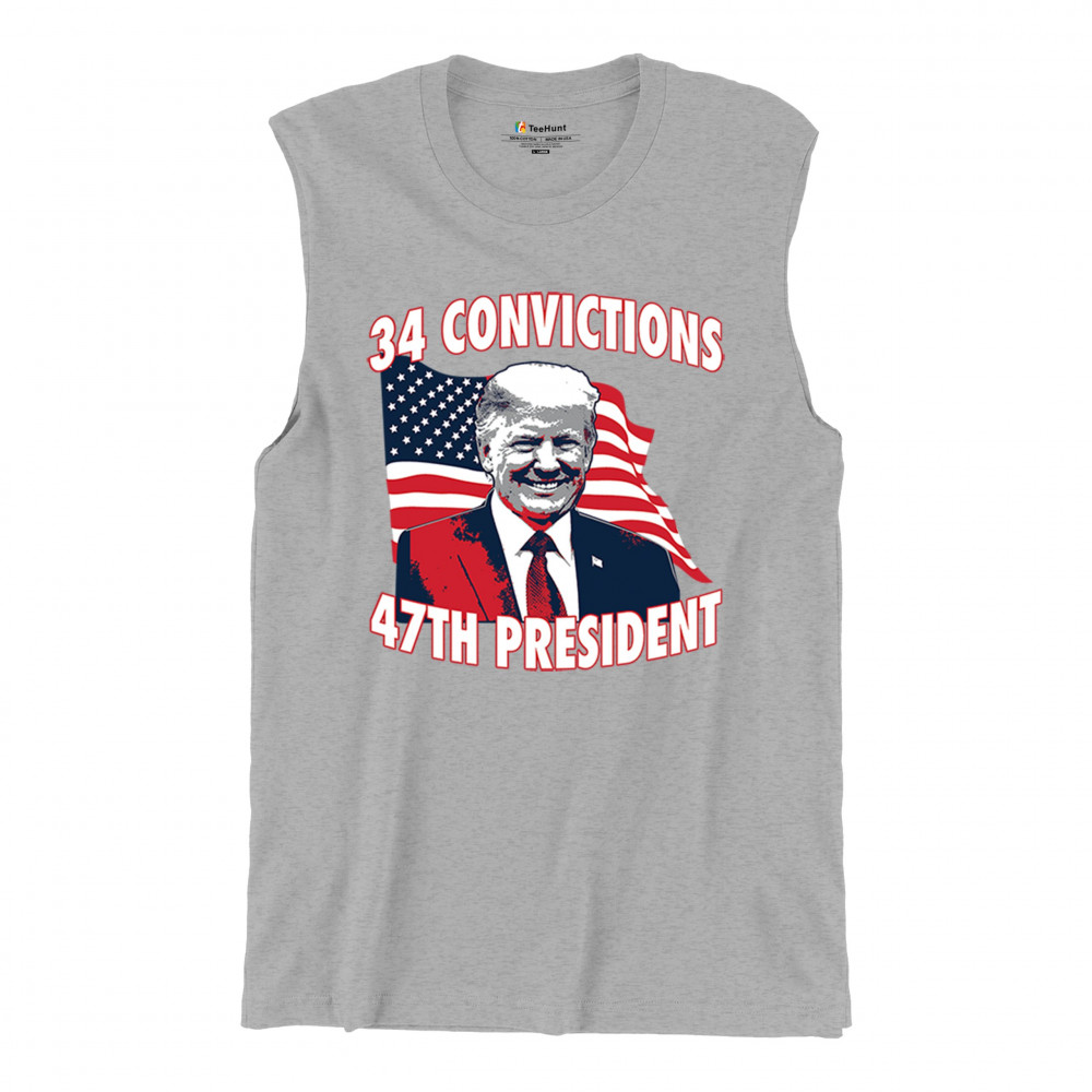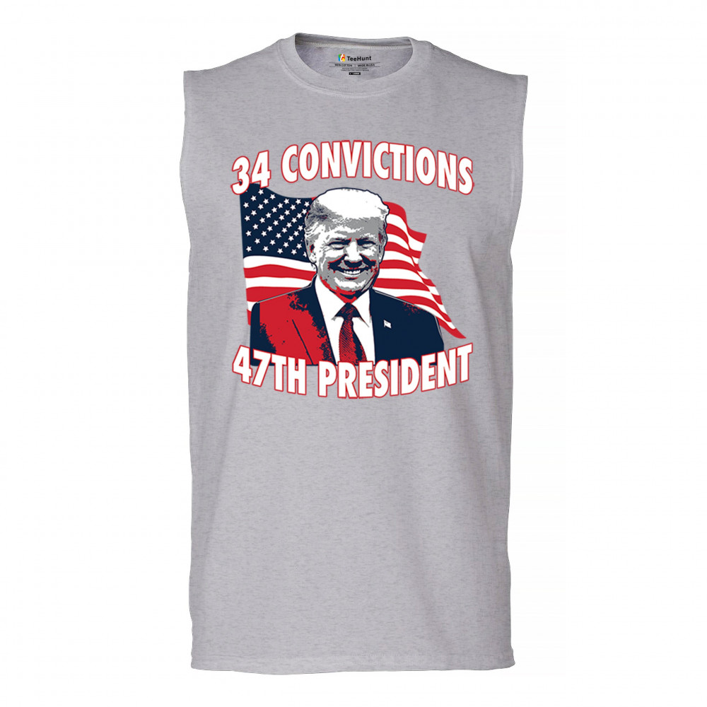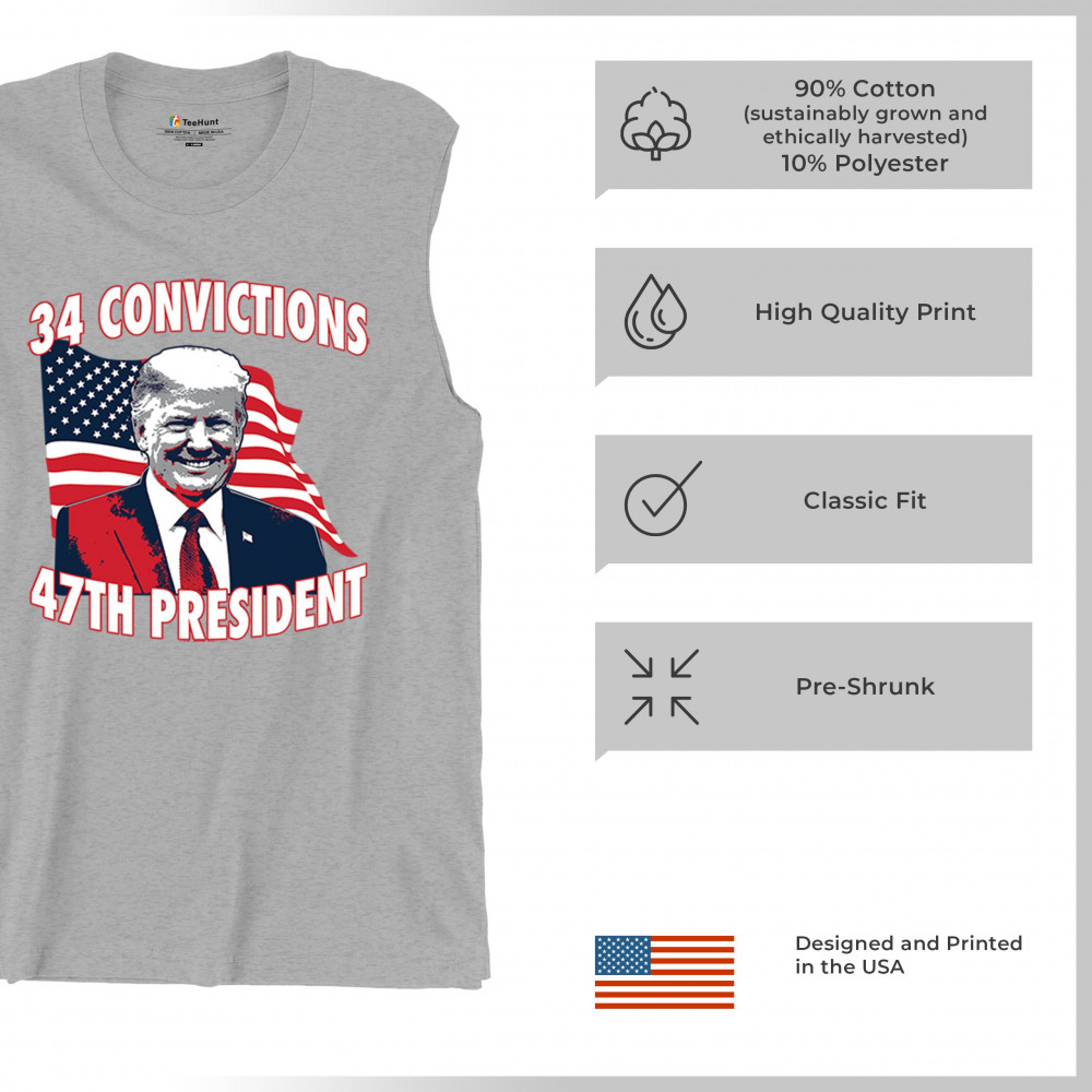 Show your support for Trump's 2024 campaign with the "34 Convictions, 47th President" design. Perfect for rallies, patriotic events, and conservative gatherings.