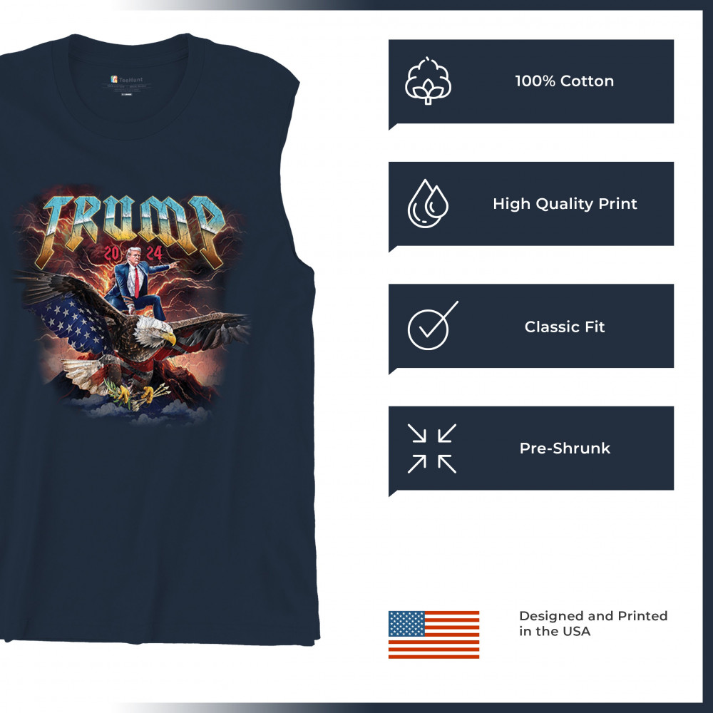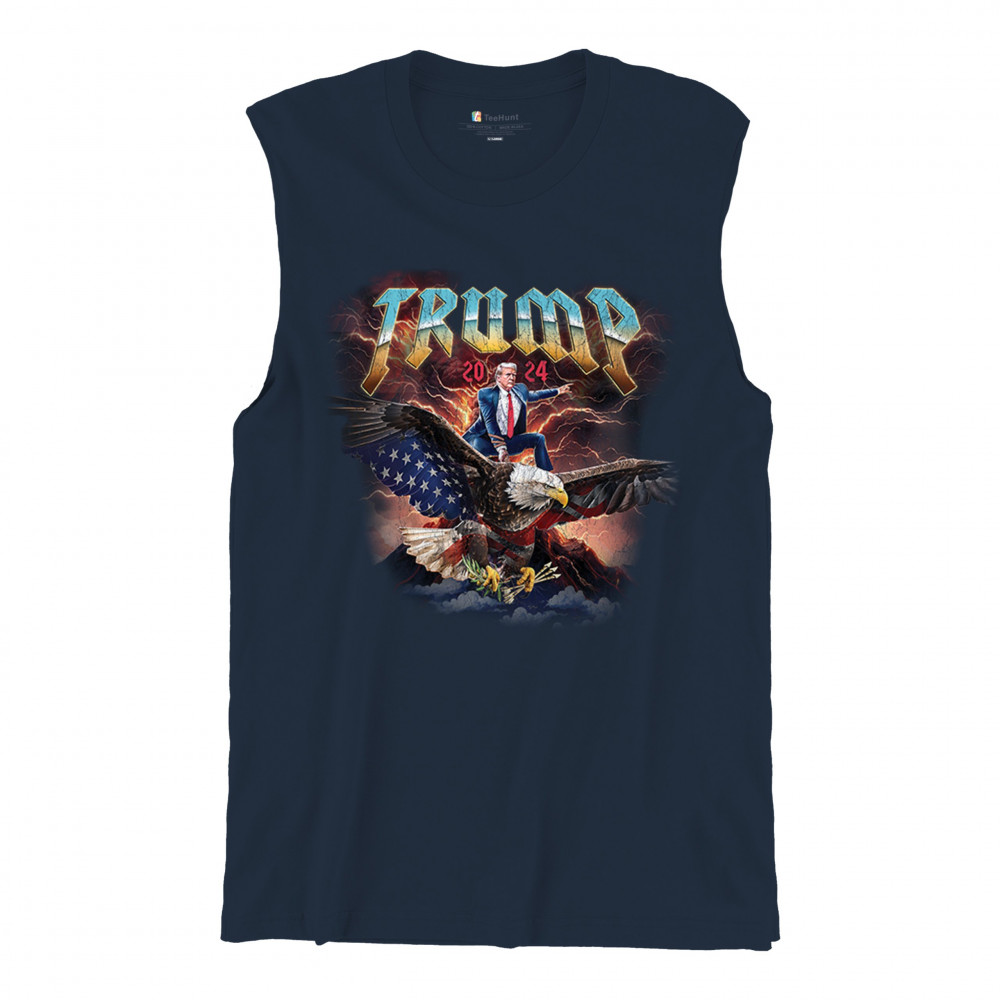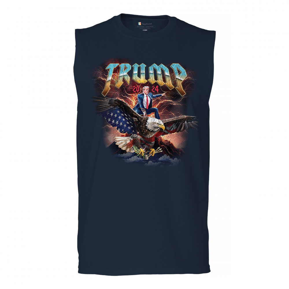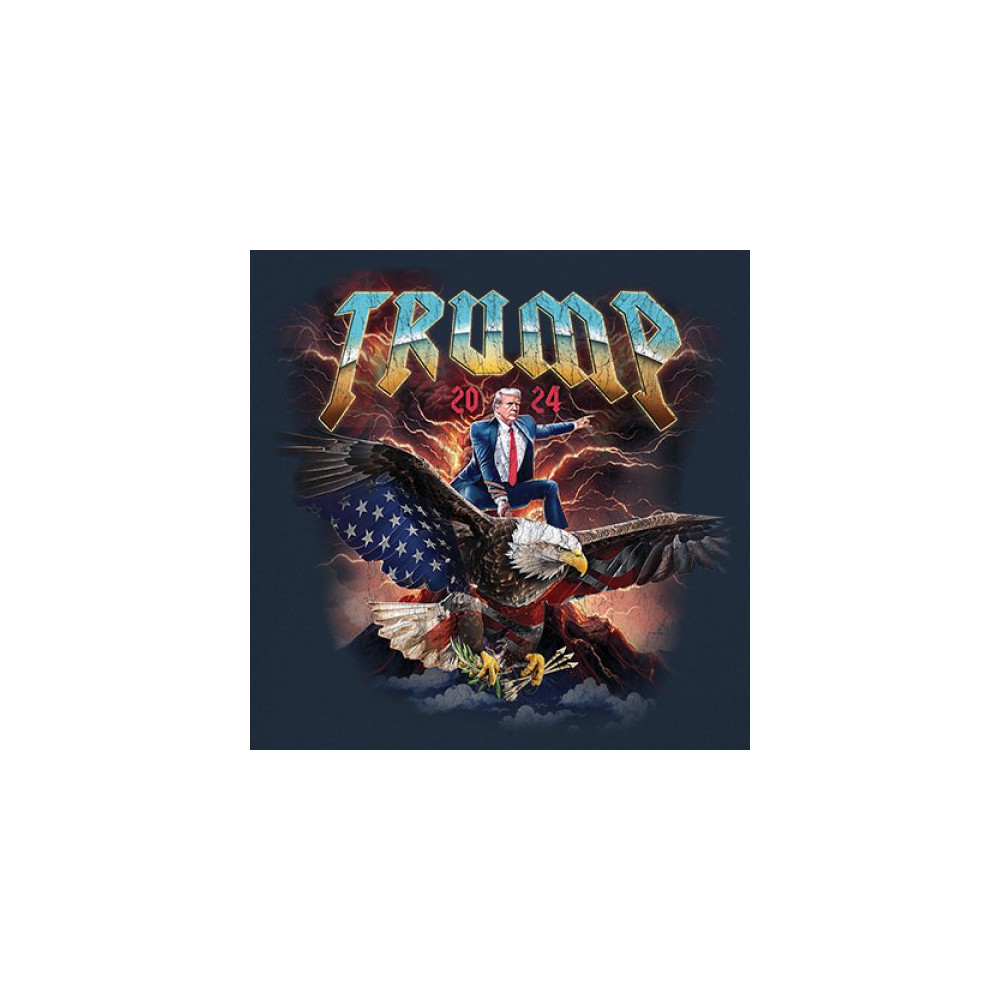 Stand out with our "Trump 2024" design featuring Trump riding an eagle. Perfect for rallies and patriotic events. Show your support with pride and confidence.