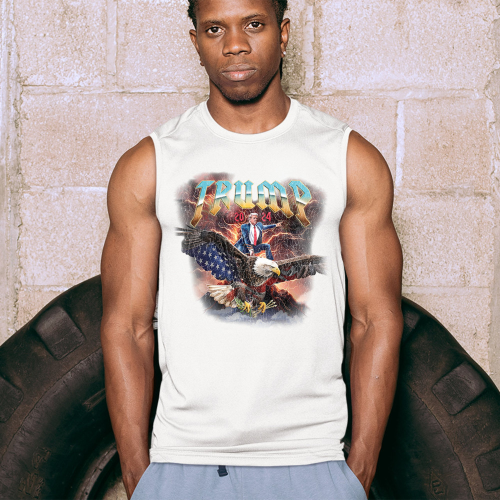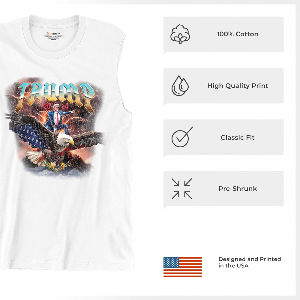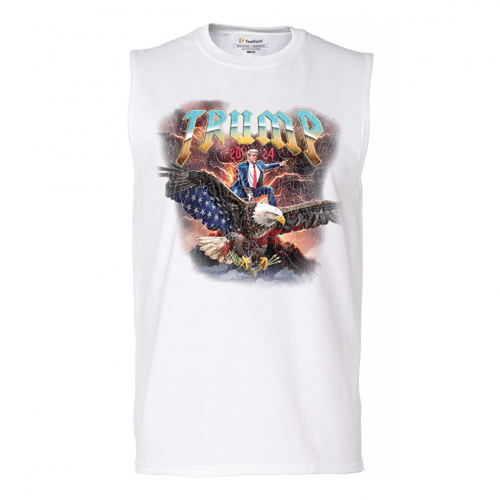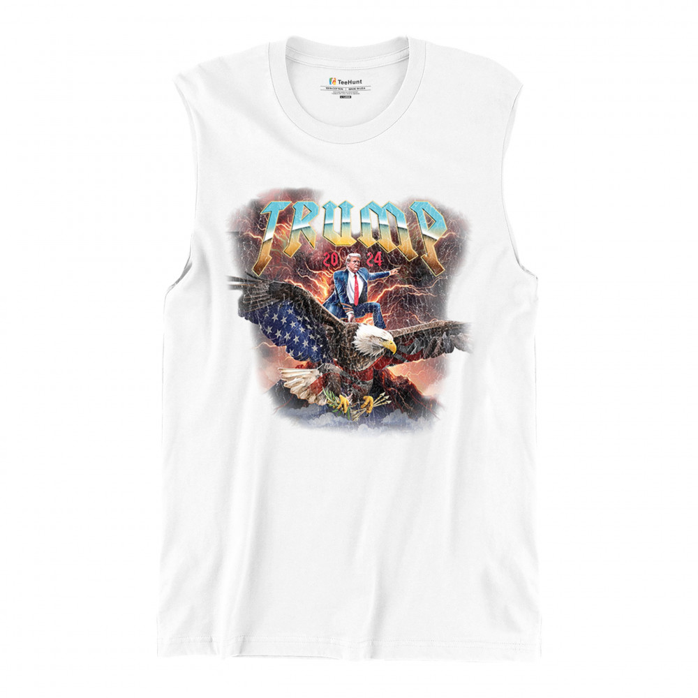 Stand out with our "Trump 2024" design featuring Trump riding an eagle. Perfect for rallies and patriotic events. Show your support with pride and confidence.