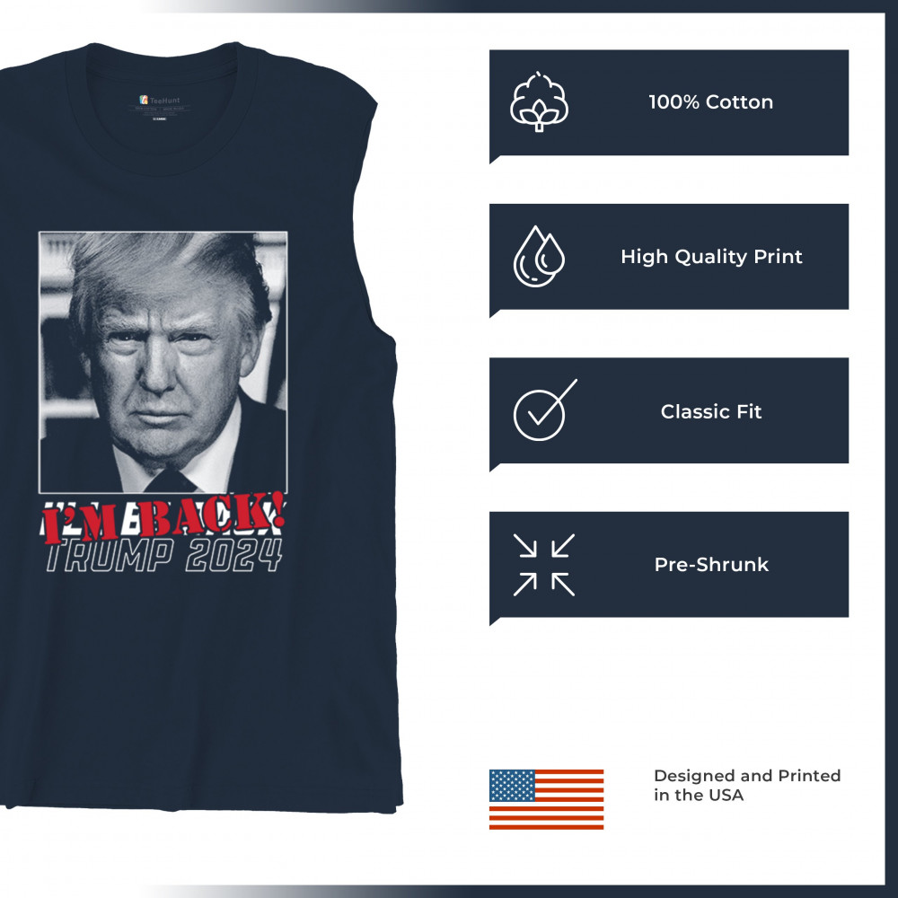 Show your support for Trump 2024 with this "I'm Back!" design, perfect for conservatives, Republicans, and patriotic Americans who believe in the Red Wave.