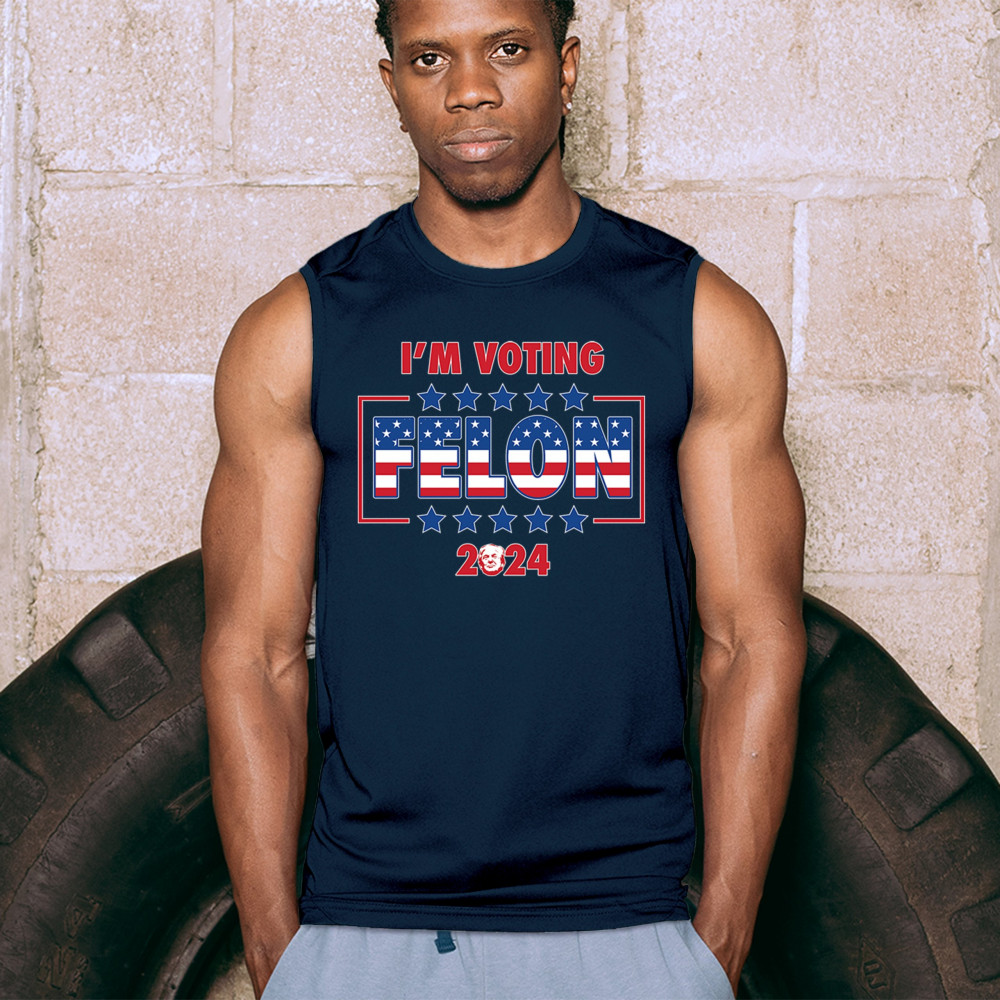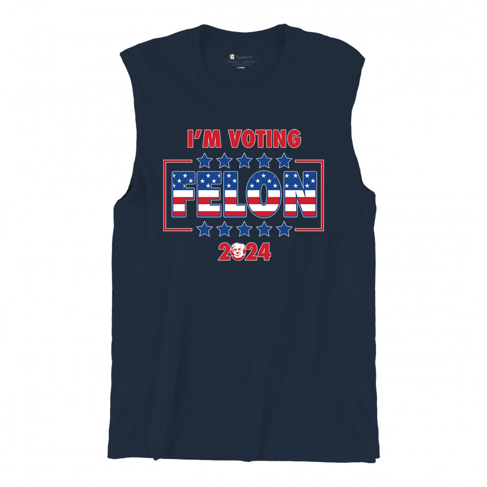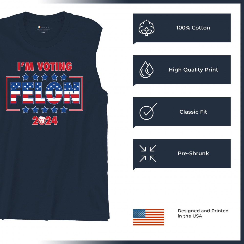 Show your support with the "I'm Voting Felon 2024" design, perfect for conservative patriots and Trump supporters. Featuring an American flag motif.