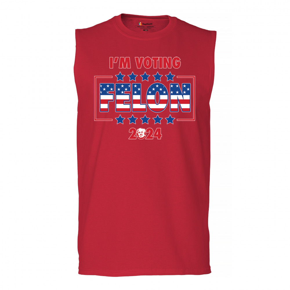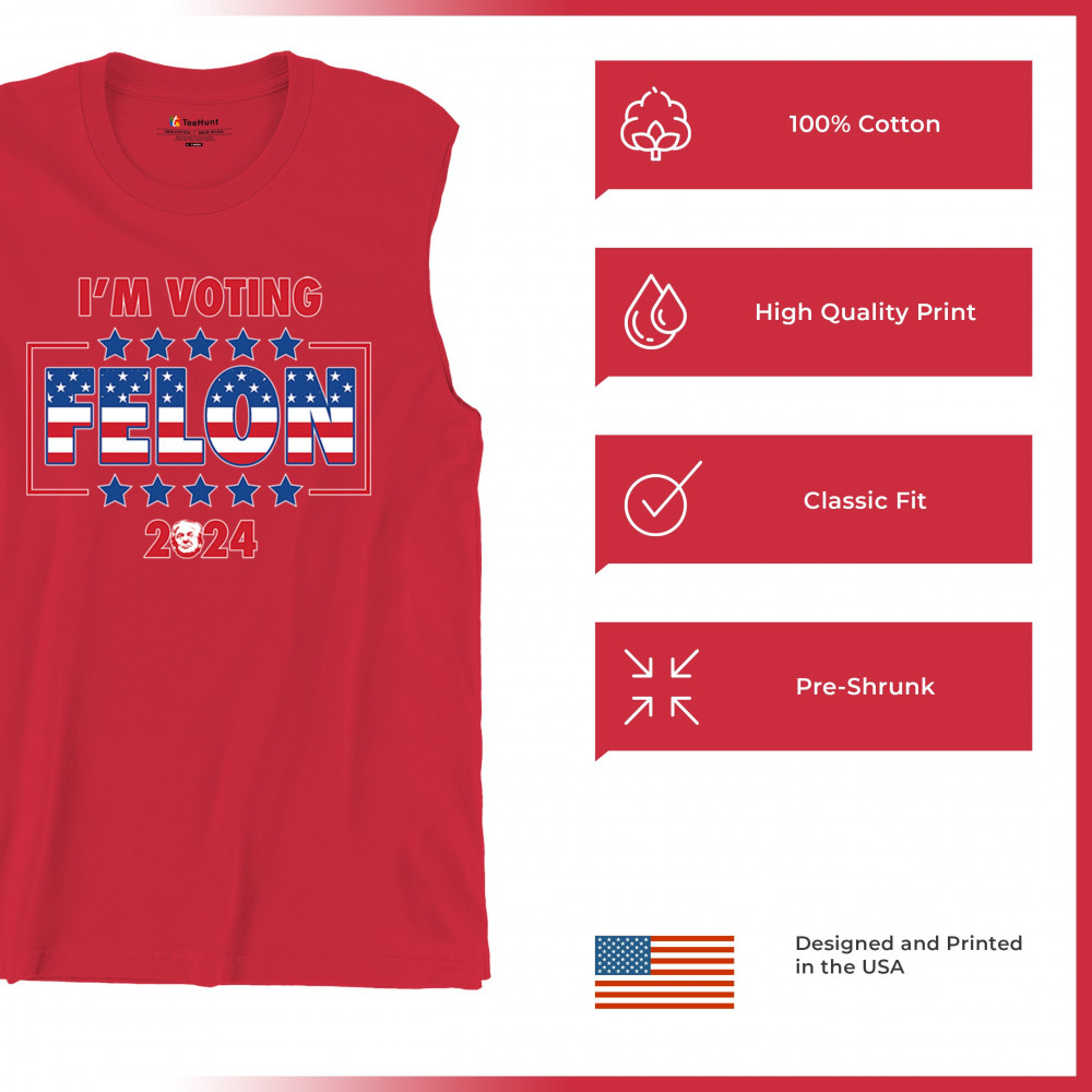 Show your support with the "I'm Voting Felon 2024" design, perfect for conservative patriots and Trump supporters. Featuring an American flag motif.