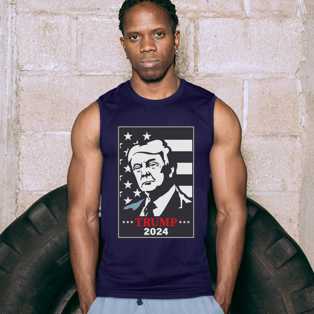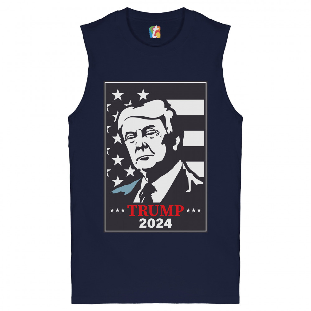TRUMP 2024 muscle shirt keep america great re-elect donald trump men's navy blue
