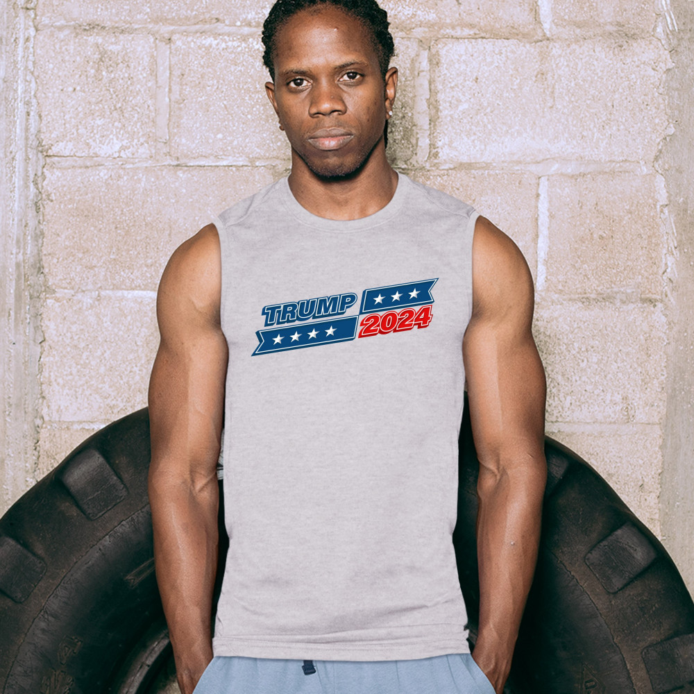 TRUMP 2024 muscle shirt re-elect donald trump keep america great men's gray