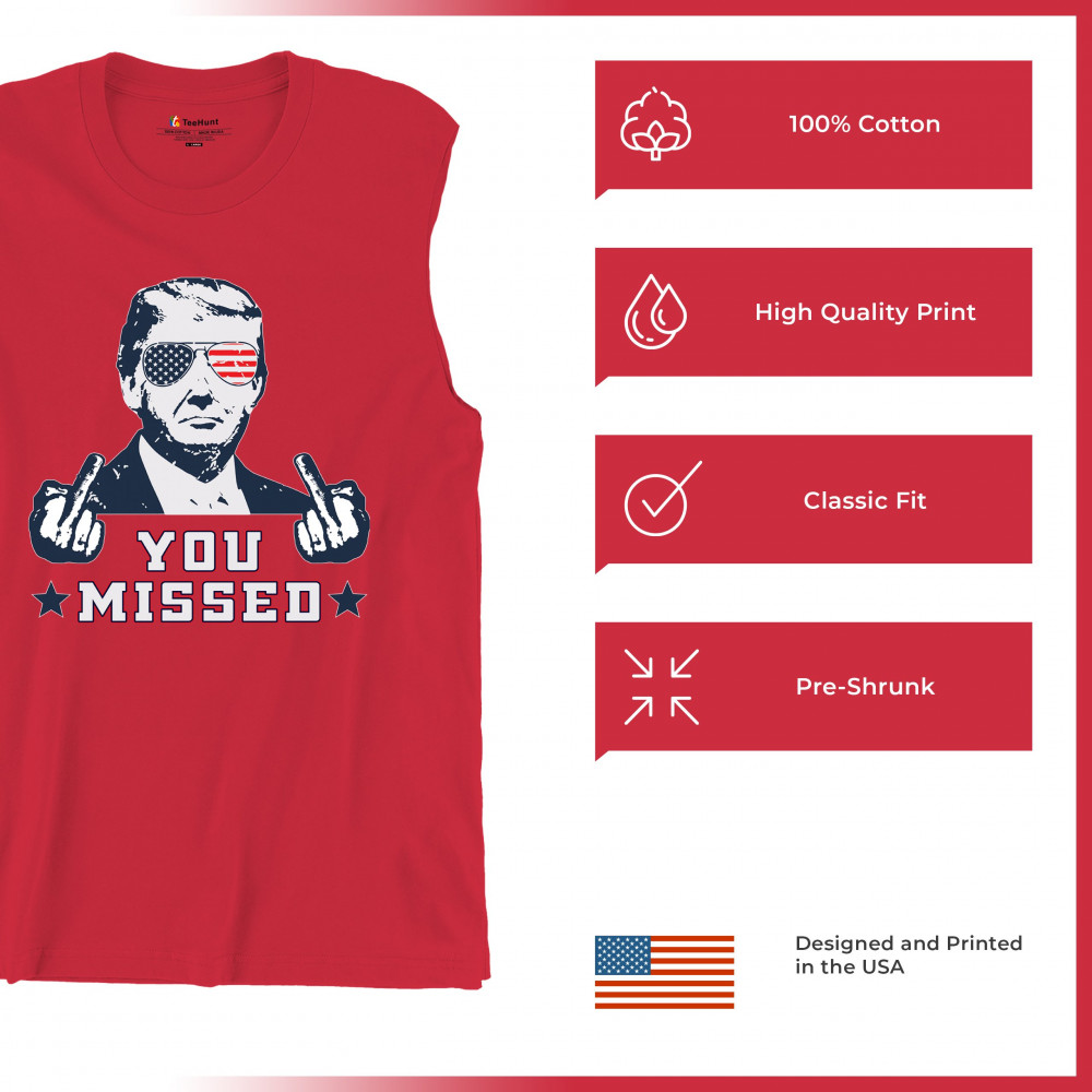 Celebrate Trump's resilience with this bold "You Missed" design. Perfect for rallies and political events. Show your unwavering support for conservative values.