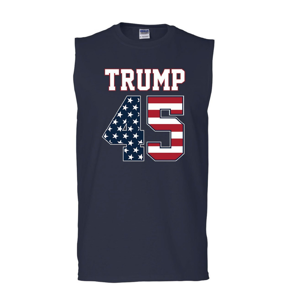TRUMP 45 muscle shirt the 45th president political stars and stripes sleeveless navy blue