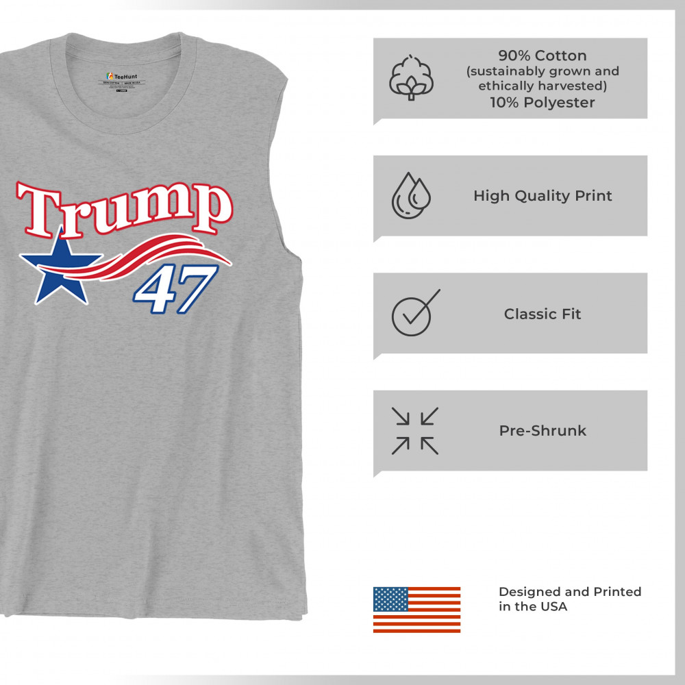 "Trump 47" design for patriotic Trump supporters, celebrating conservative values, Red Wave, and America First with pride and unity for the future.