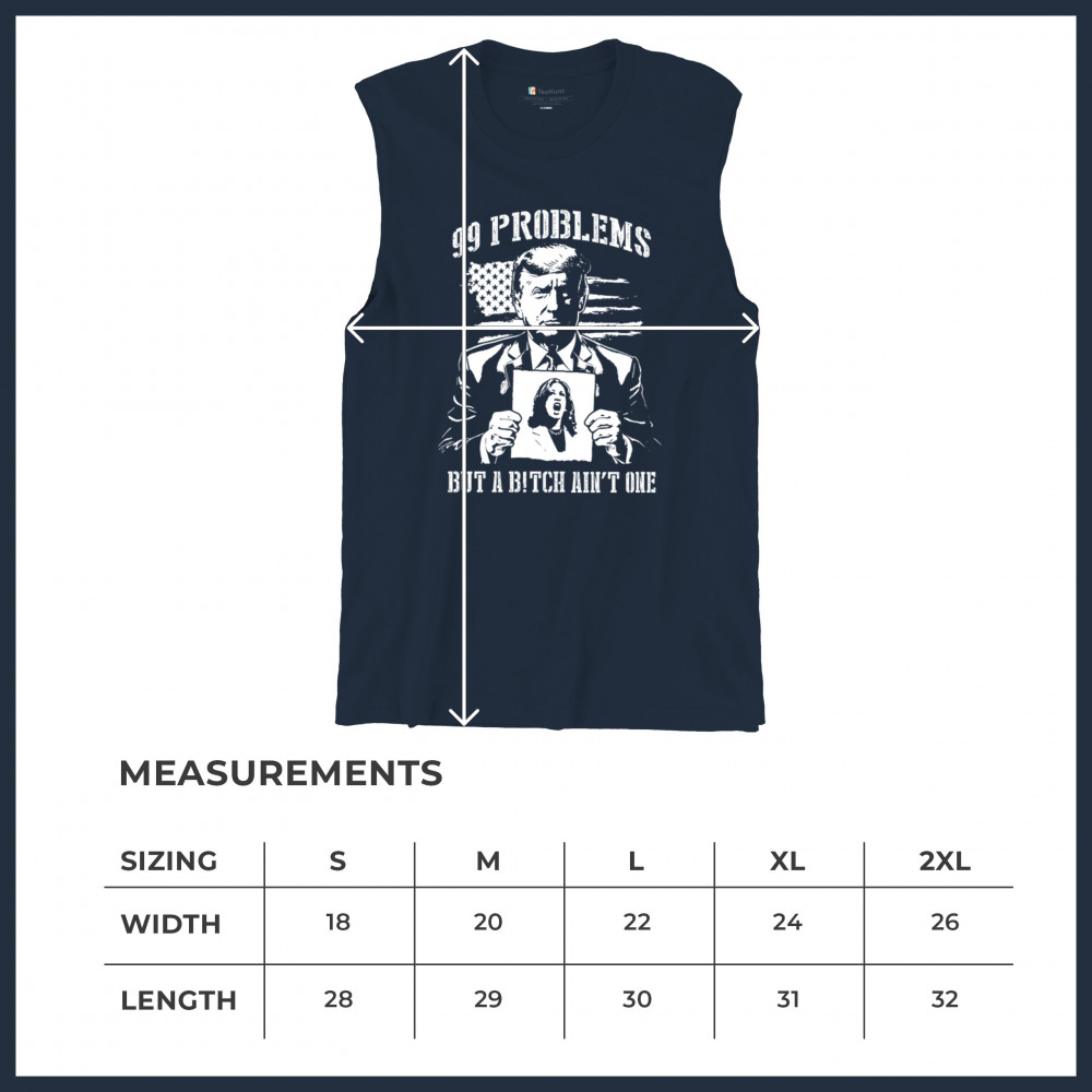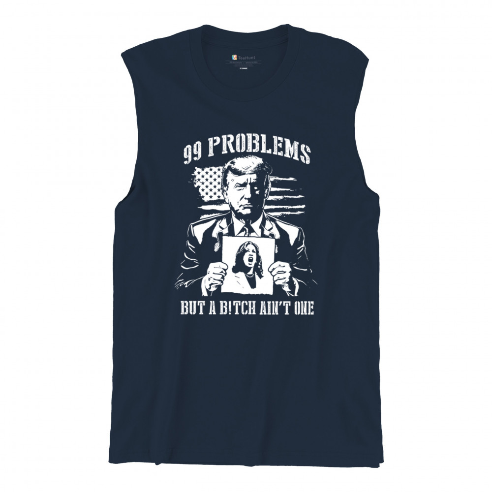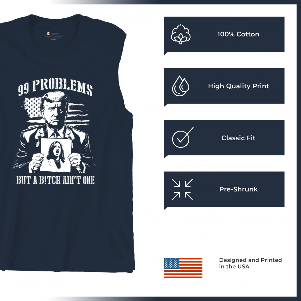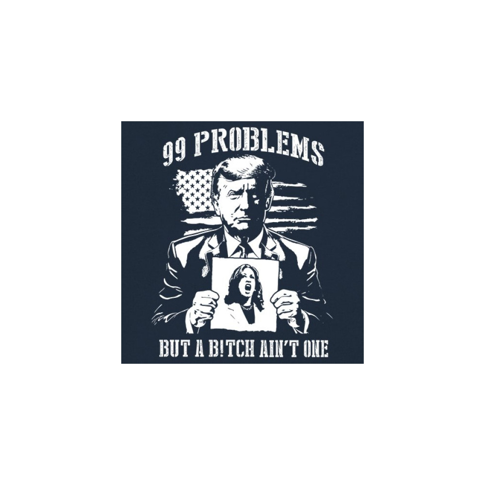 Bold conservative "99 Problems But a B*tch Ain’t One" design featuring Donald J. Trump and an American flag. Perfect for proud Republicans and patriots.