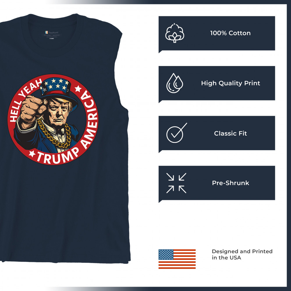 Support Donald Trump with the "Hell Yeah Trump America" design, representing conservative values, strength, and patriotism.