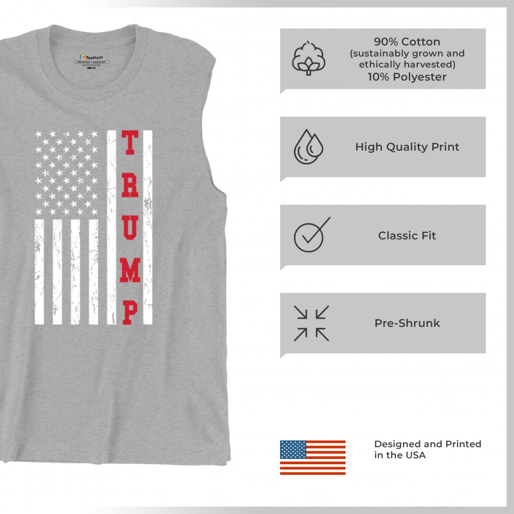 how your unwavering support for America First policies with our Trump 2024 Flag graphic t-shirt. This vintage-inspired design blends the iconic American Flag with bold 'Trump 2024' lettering, symbolizing a commitment to conservative values and the MAGA movement. Whether you're part of the Trump Train or a proud supporter, this shirt is a statement of victory and determination. Let's Go Brandon? More like Let's Go America! Join the Rebelution and make your voice heard with this Republican-themed merchandise.