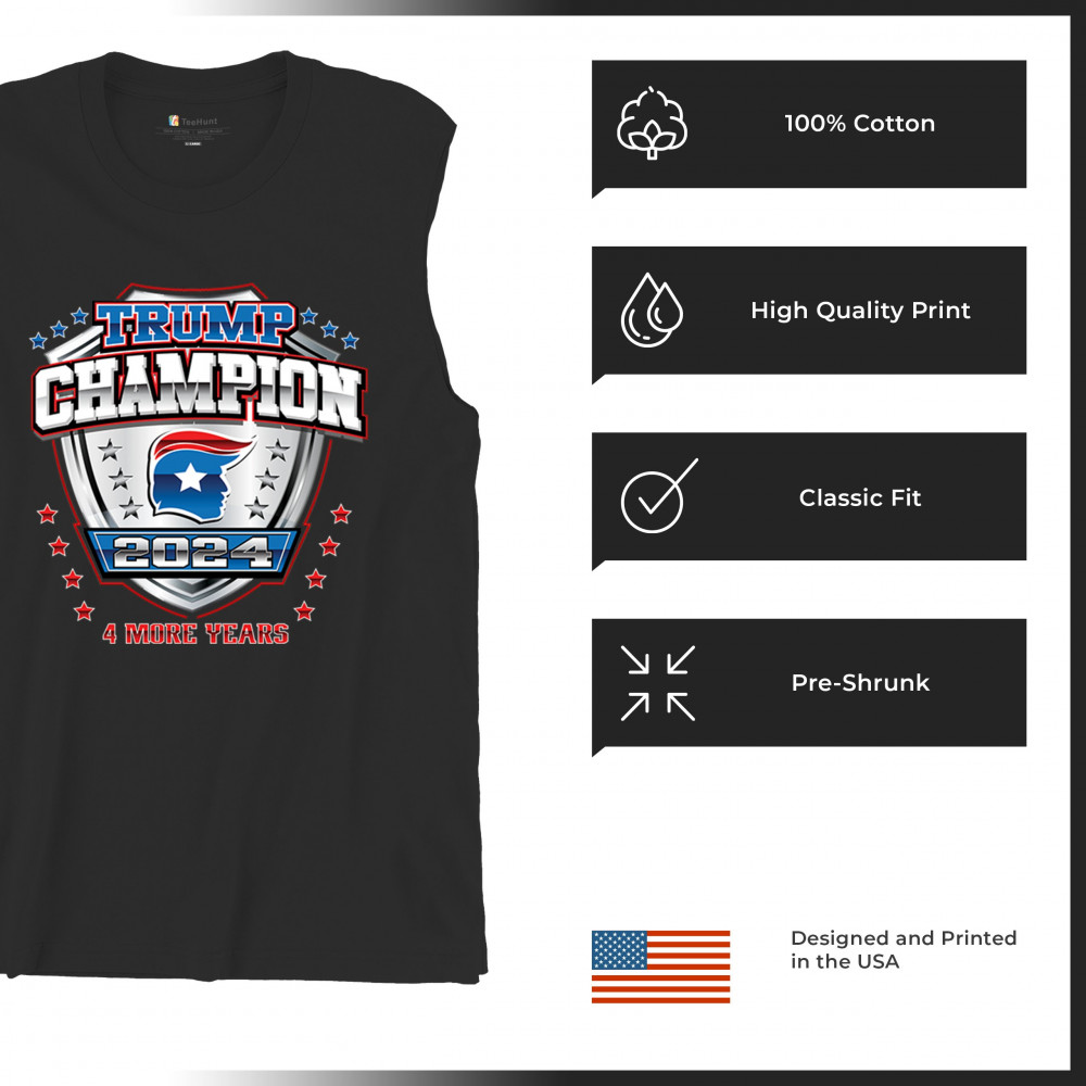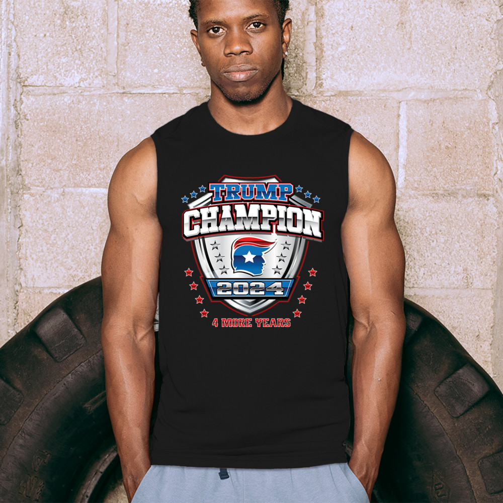TRUMP CHAMPION 2024 4 MORE YEARS muscle shirt maga 47th president vance men's black