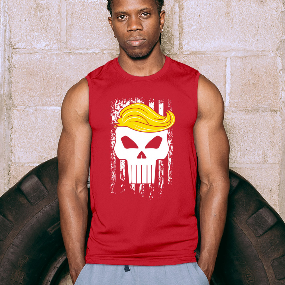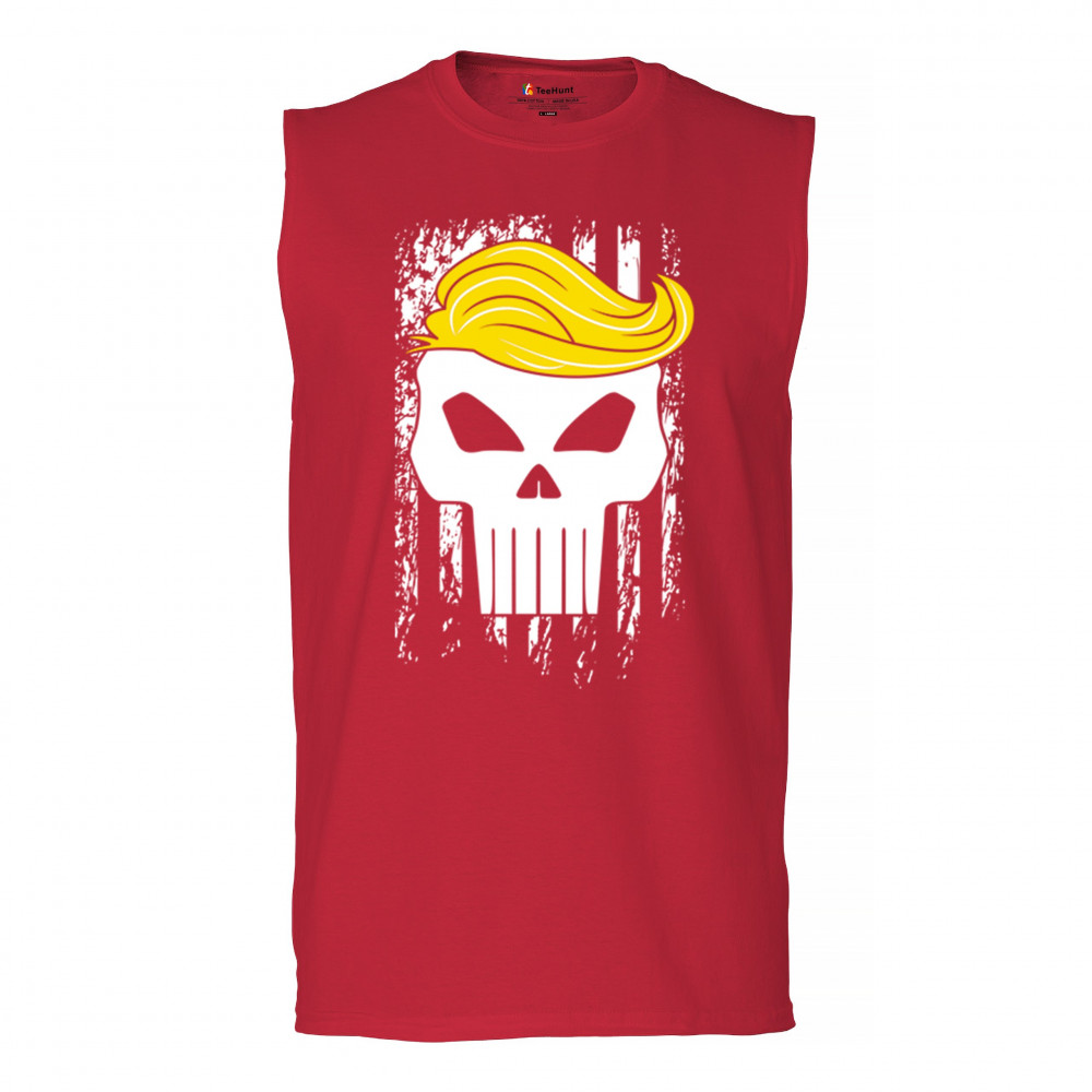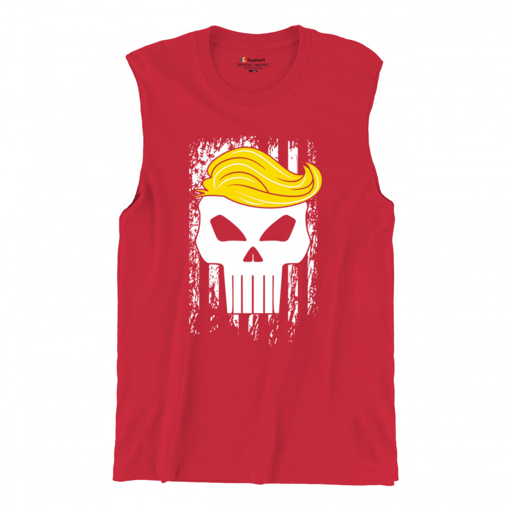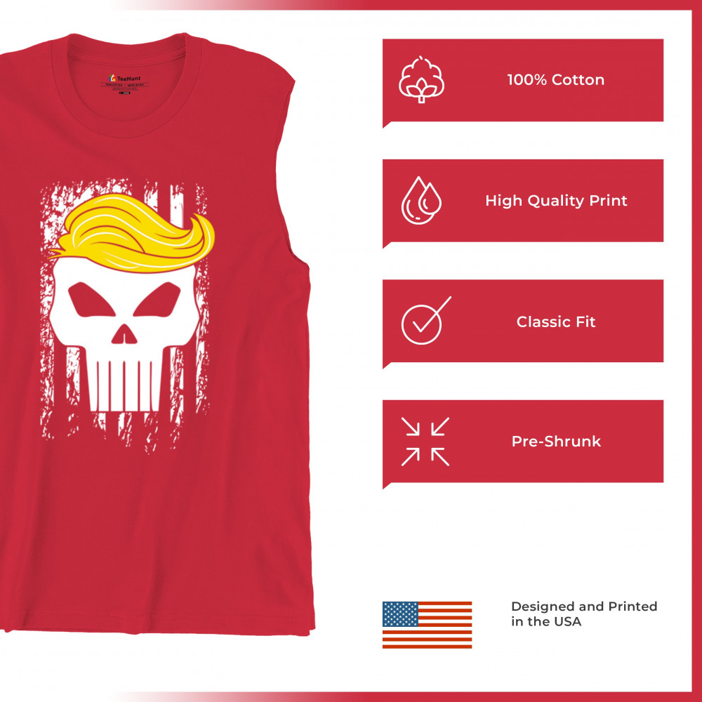 Explore our exclusive design - a symbol of unwavering support for America. Featuring a distressed flag and a skull with Trump's hair, it's perfect for patriotic conservatives