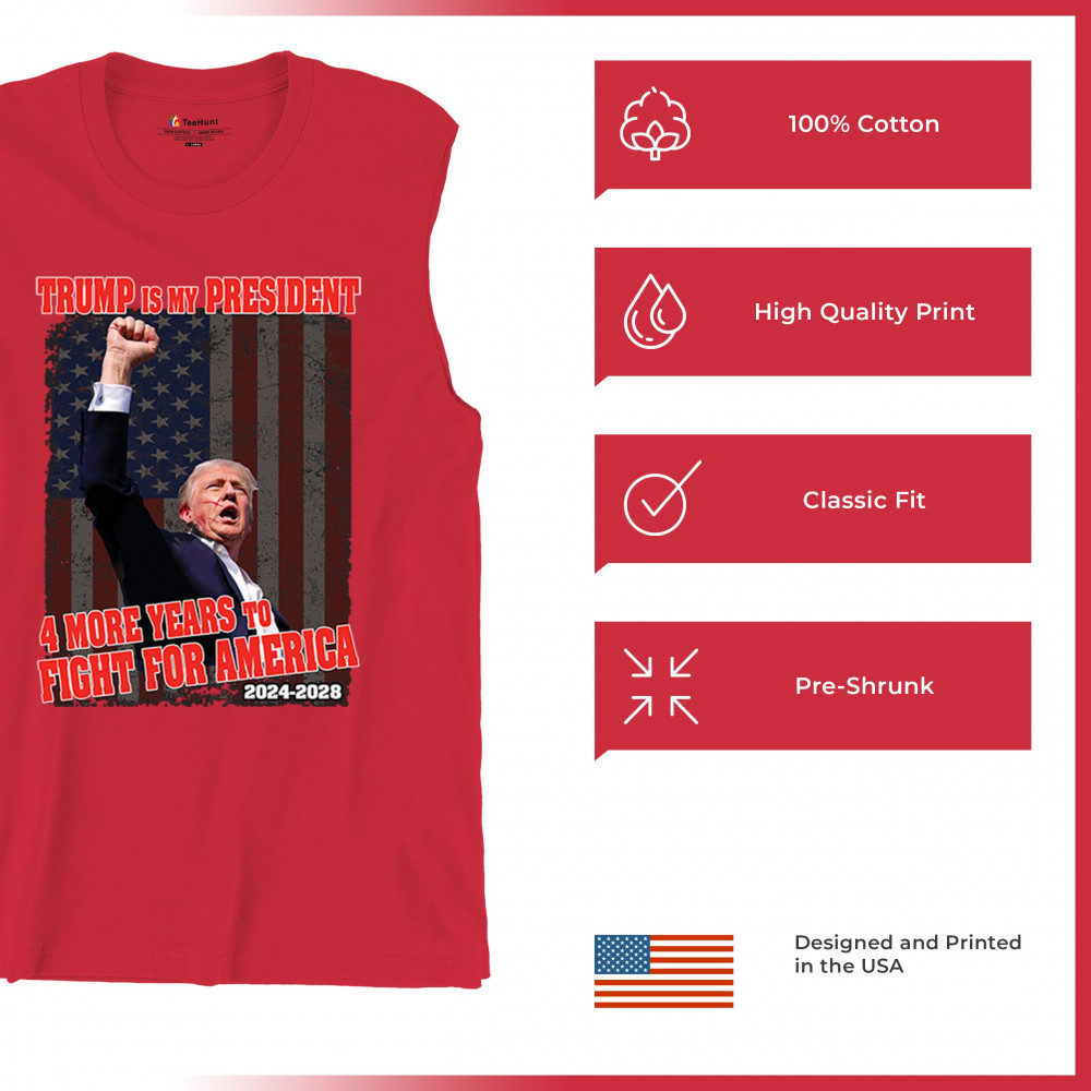 Show your support for Trump with the "4 More Years to Fight for America" design. Perfect for patriots, conservatives, and America First advocates.