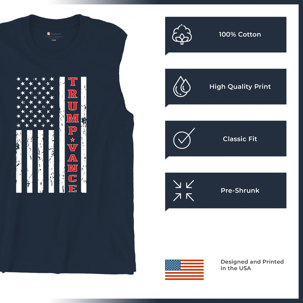 Show your support for Trump Vance 2024 with a bold, rustic American flag design. Perfect for rallies and daily wear. Patriotic and durable.