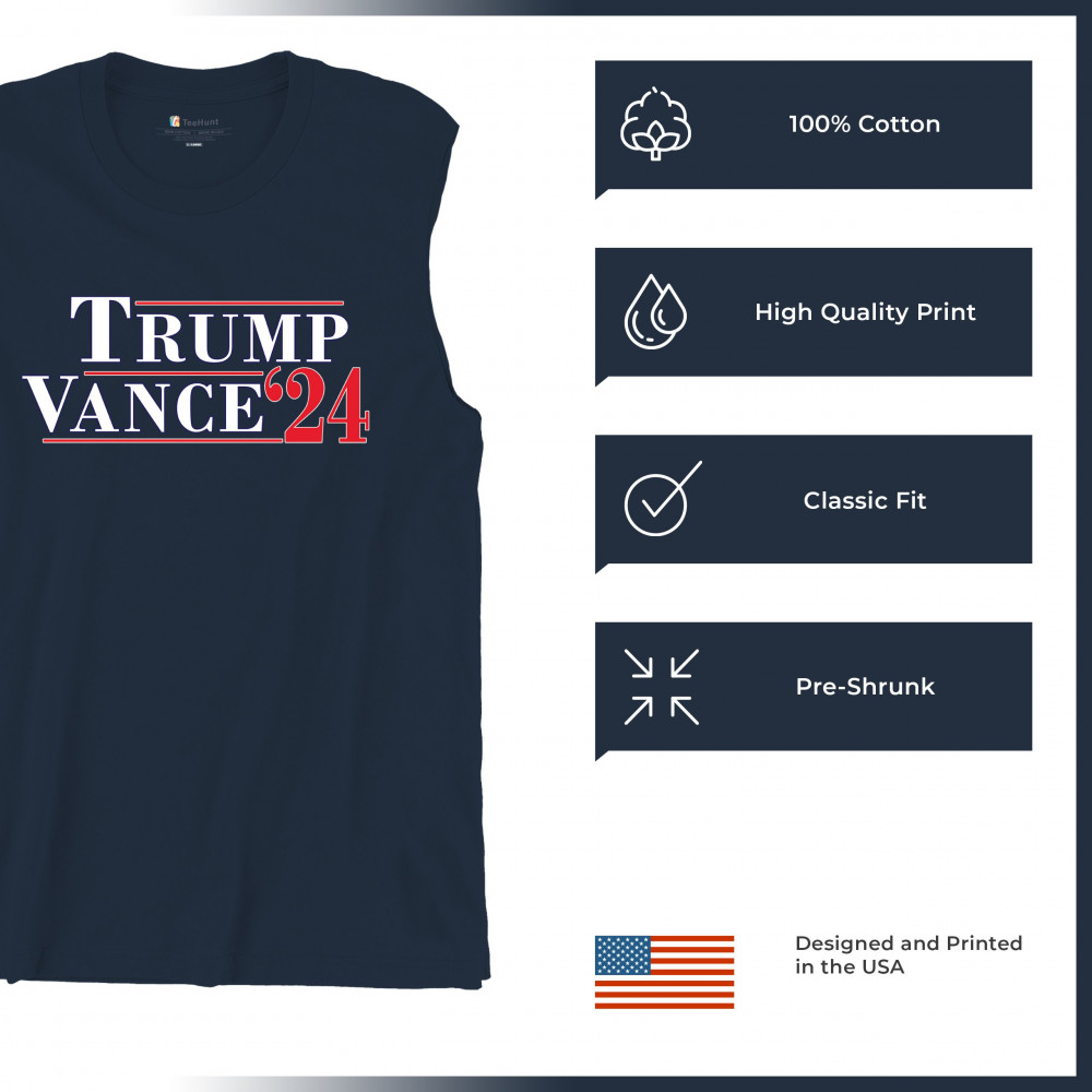 Show your support for Trump Vance 2024 with this patriotic design featuring bold red, white, and blue colors and a flag background. Perfect for rallies and conservative events.