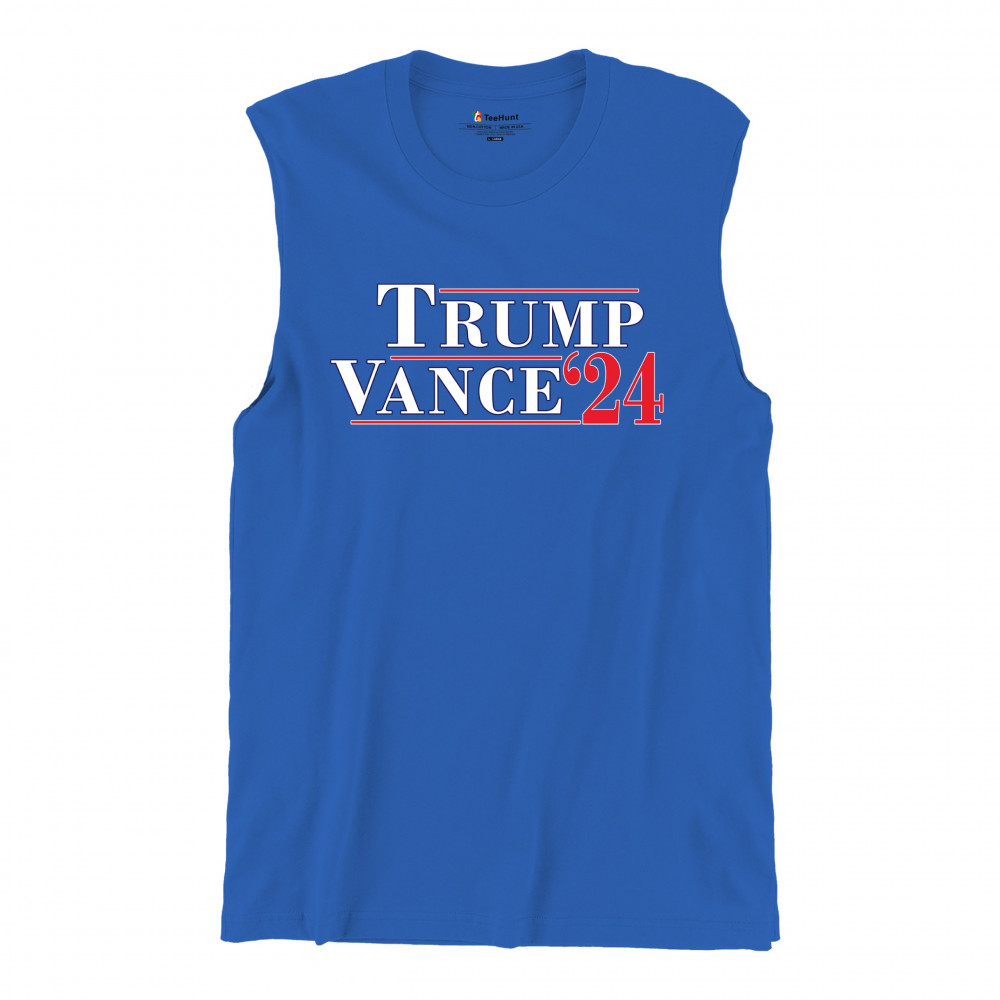 Show your support for Trump Vance 2024 with this patriotic design featuring bold red, white, and blue colors and a flag background. Perfect for rallies and conservative events.