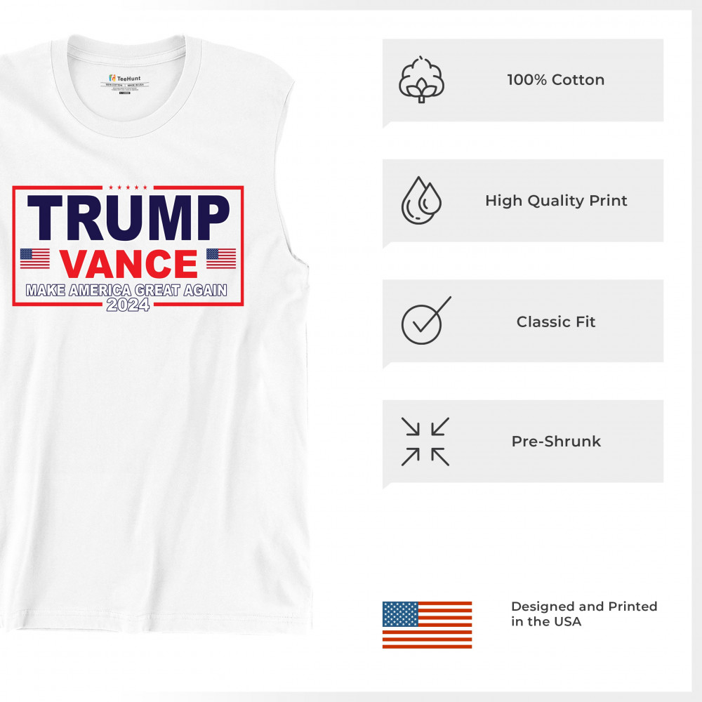 Express your support for the Trump-Vance 2024 campaign with this bold and patriotic design. Highlighting the American flag and the impactful "Make America Great Again" slogan, this design is ideal for those who stand by conservative values. Perfect for attending rallies, political events, or as an everyday statement piece, it symbolizes victory, resilience, and the indomitable American spirit. Show your dedication to the cause and rally fellow supporters with this unique and powerful design. Wear it with pride and make a statement wherever you go.