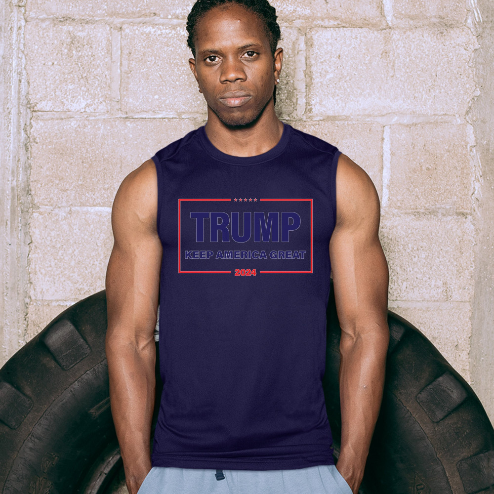 TRUMP KEEP AMERICA GREAT 2024 muscle shirt re-elect donald trump maga men's navy blue