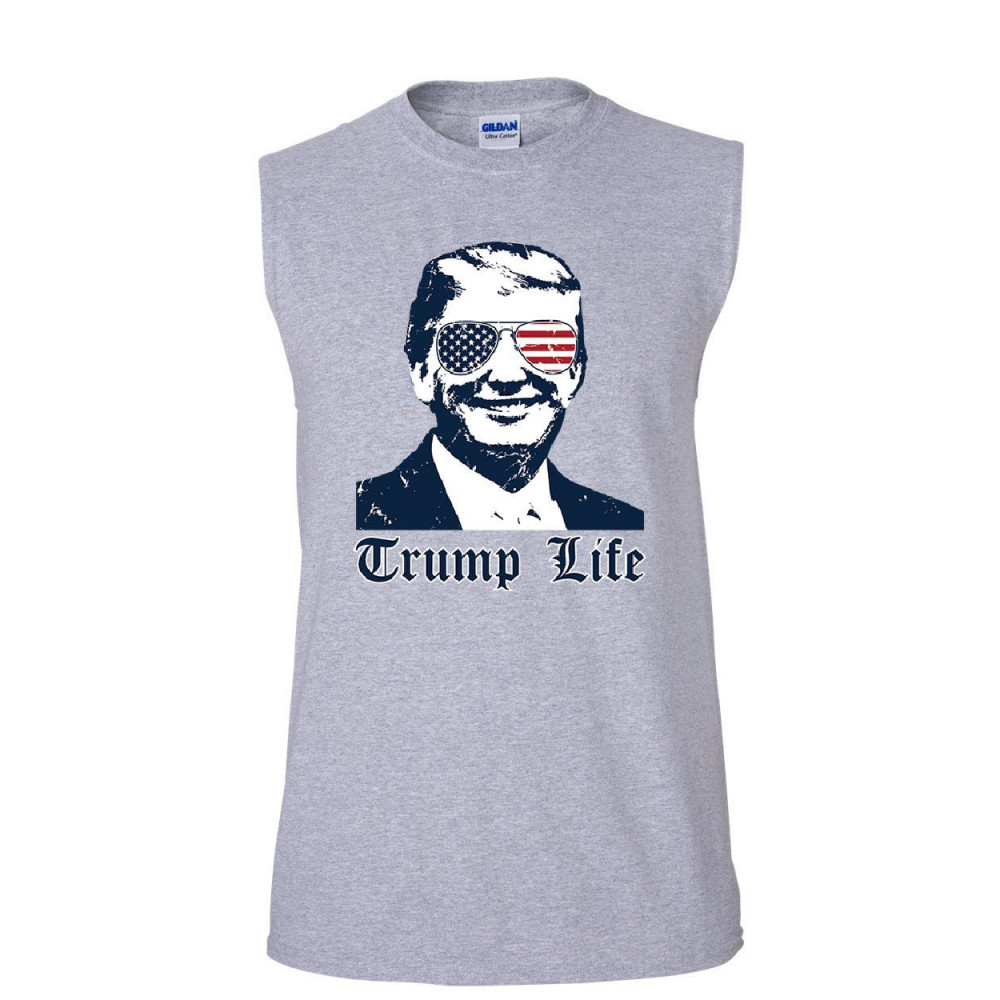 TRUMP LIFE muscle shirt 45th maga keep america great thug life parody sleeveless gray