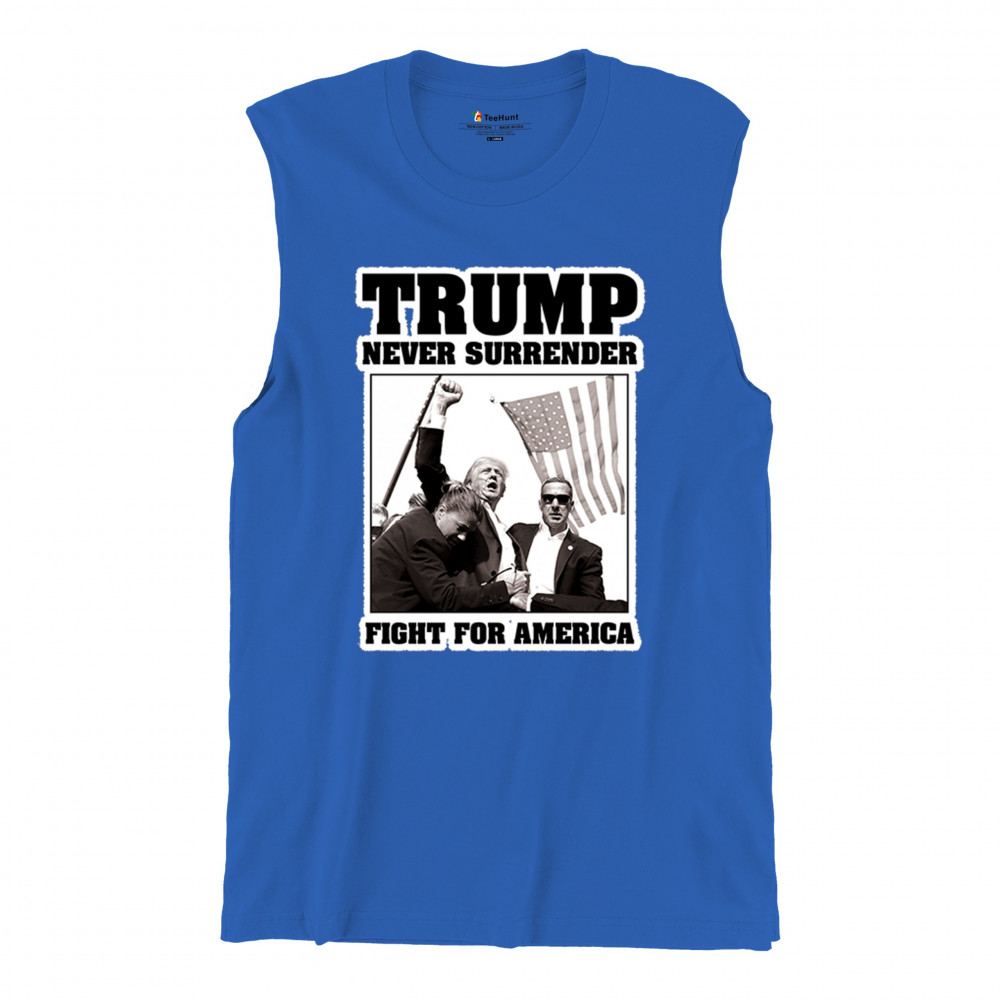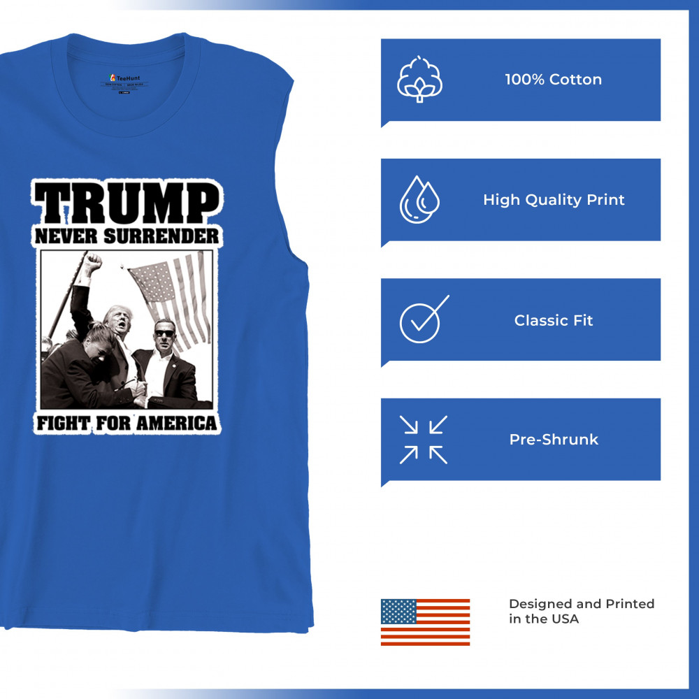 Express your unwavering support with the bold "Trump Never Surrender" design, perfect for rallies and everyday wear. Durable and stylish, show your patriotism proudly.