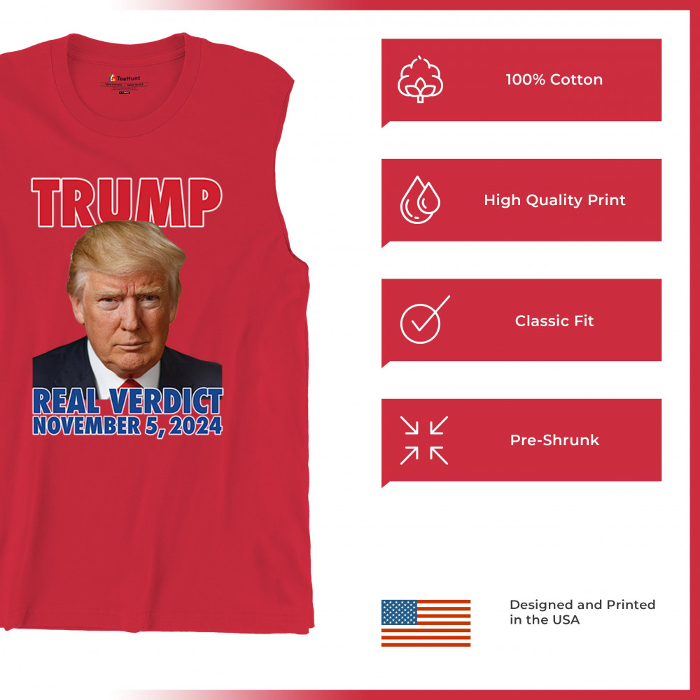 Show your support for Donald Trump with our bold "Real Verdict November 5, 2024" design. Perfect for Trump supporters, MAGA movement enthusiasts, and those who mock Biden with the "Let's Go Brandon" slogan.
