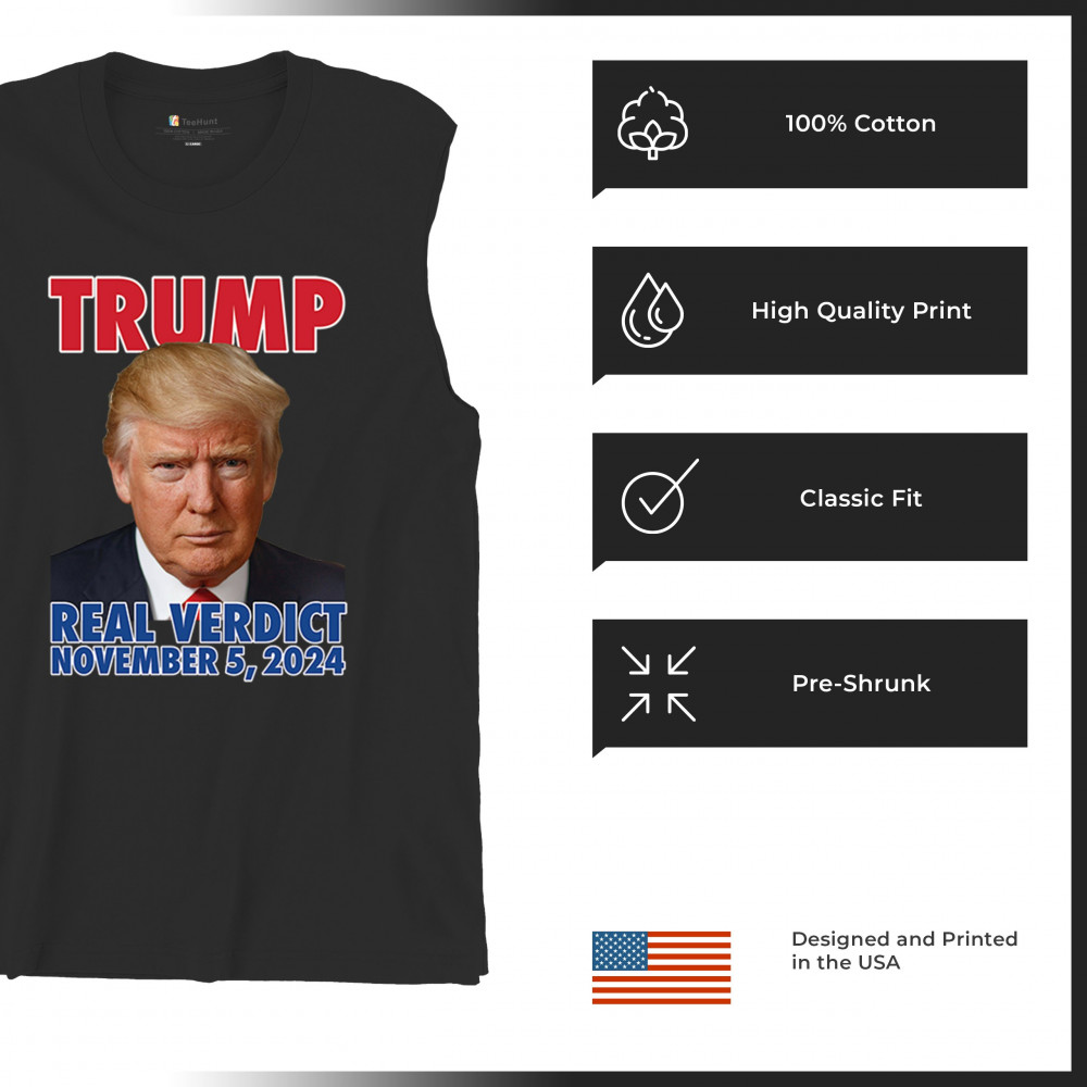Show your support for Donald Trump with our bold "Real Verdict November 5, 2024" design. Perfect for Trump supporters, MAGA movement enthusiasts, and those who mock Biden with the "Let's Go Brandon" slogan.