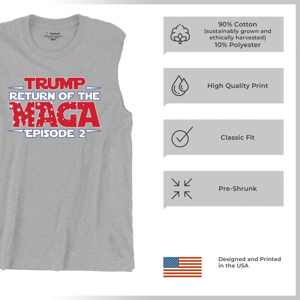 Make a bold statement with the "Return of the MAGA: Episode 2" design, celebrating Donald J. Trump and the Red Wave movement. Perfect for conservatives, Trump supporters, and Republicans who champion America First values, freedom, and the fight for a better future. A must-have for those who never surrender and stand for the people's mandate.
