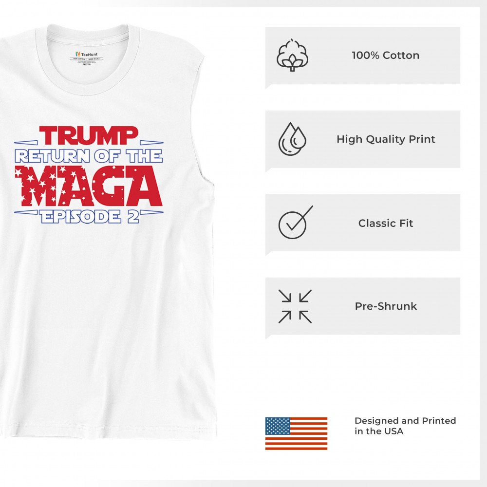 Join the "Return of the MAGA: Episode 2" movement. Celebrate Donald J. Trump, the Red Wave, and America First values with this bold design.