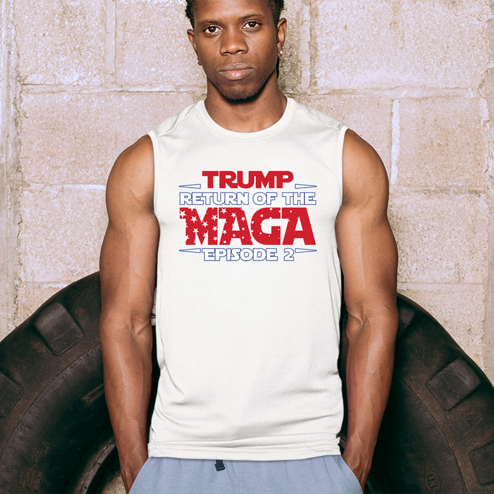 Make a bold statement with the "Return of the MAGA: Episode 2" design, celebrating Donald J. Trump and the Red Wave movement. Perfect for conservatives, Trump supporters, and Republicans who champion America First values, freedom, and the fight for a better future. A must-have for those who never surrender and stand for the people's mandate.