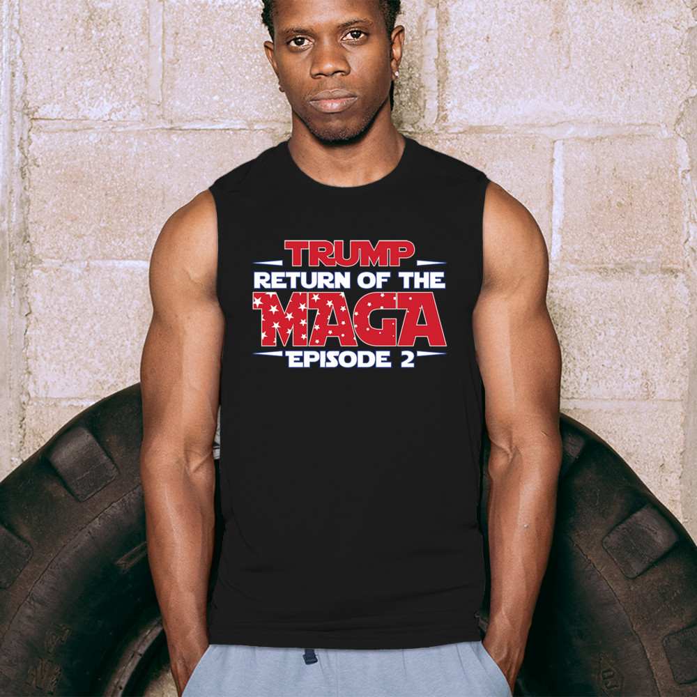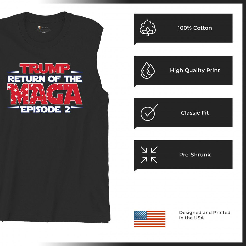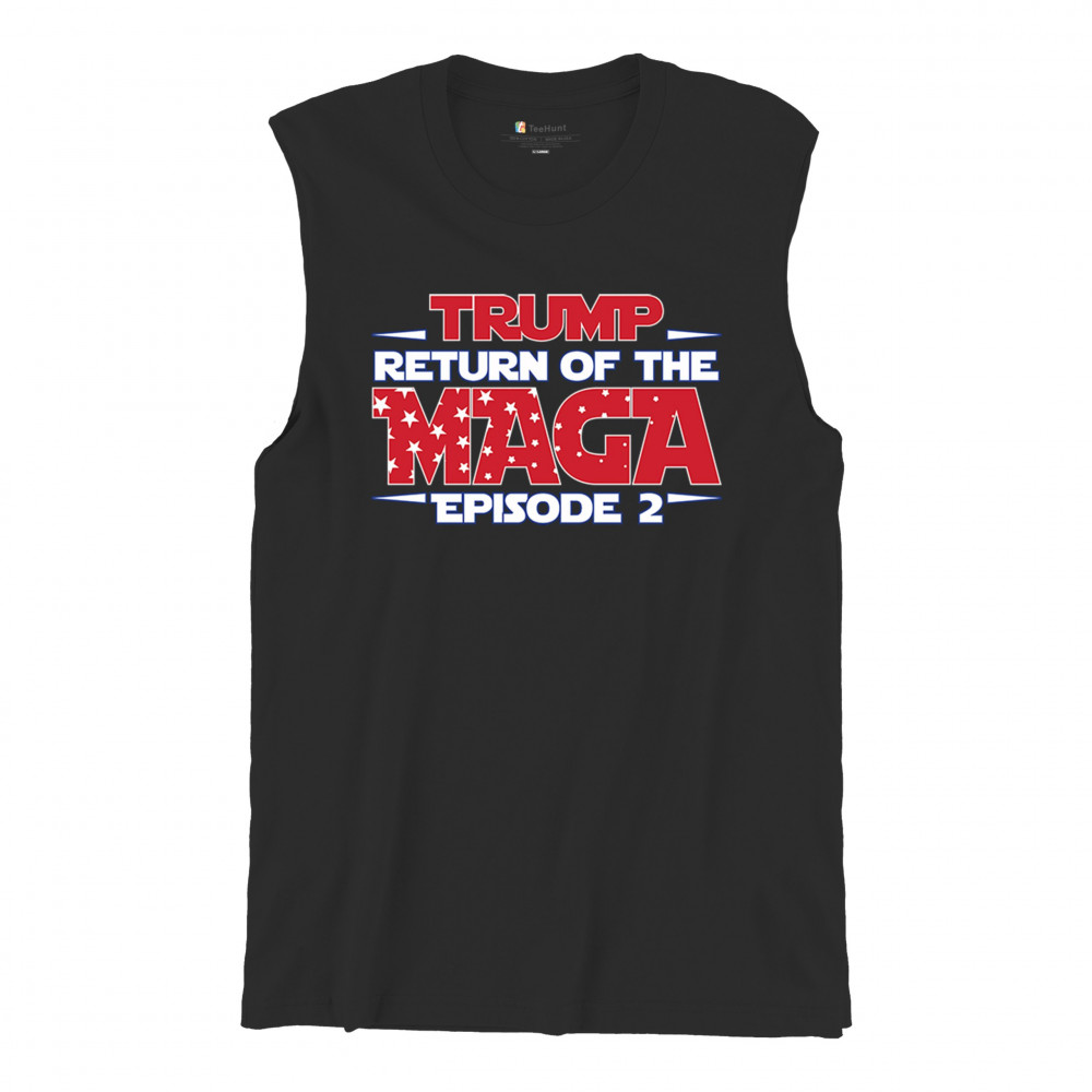 Make a bold statement with the "Return of the MAGA: Episode 2" design, celebrating Donald J. Trump and the Red Wave movement. Perfect for conservatives, Trump supporters, and Republicans who champion America First values, freedom, and the fight for a better future. A must-have for those who never surrender and stand for the people's mandate.
